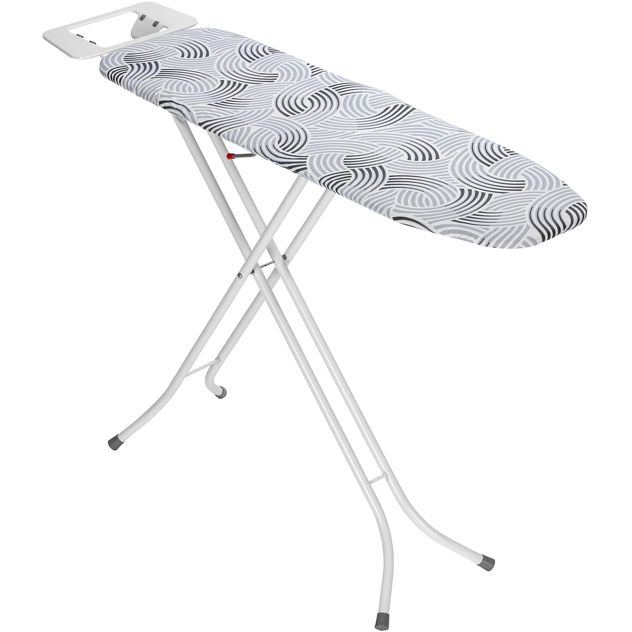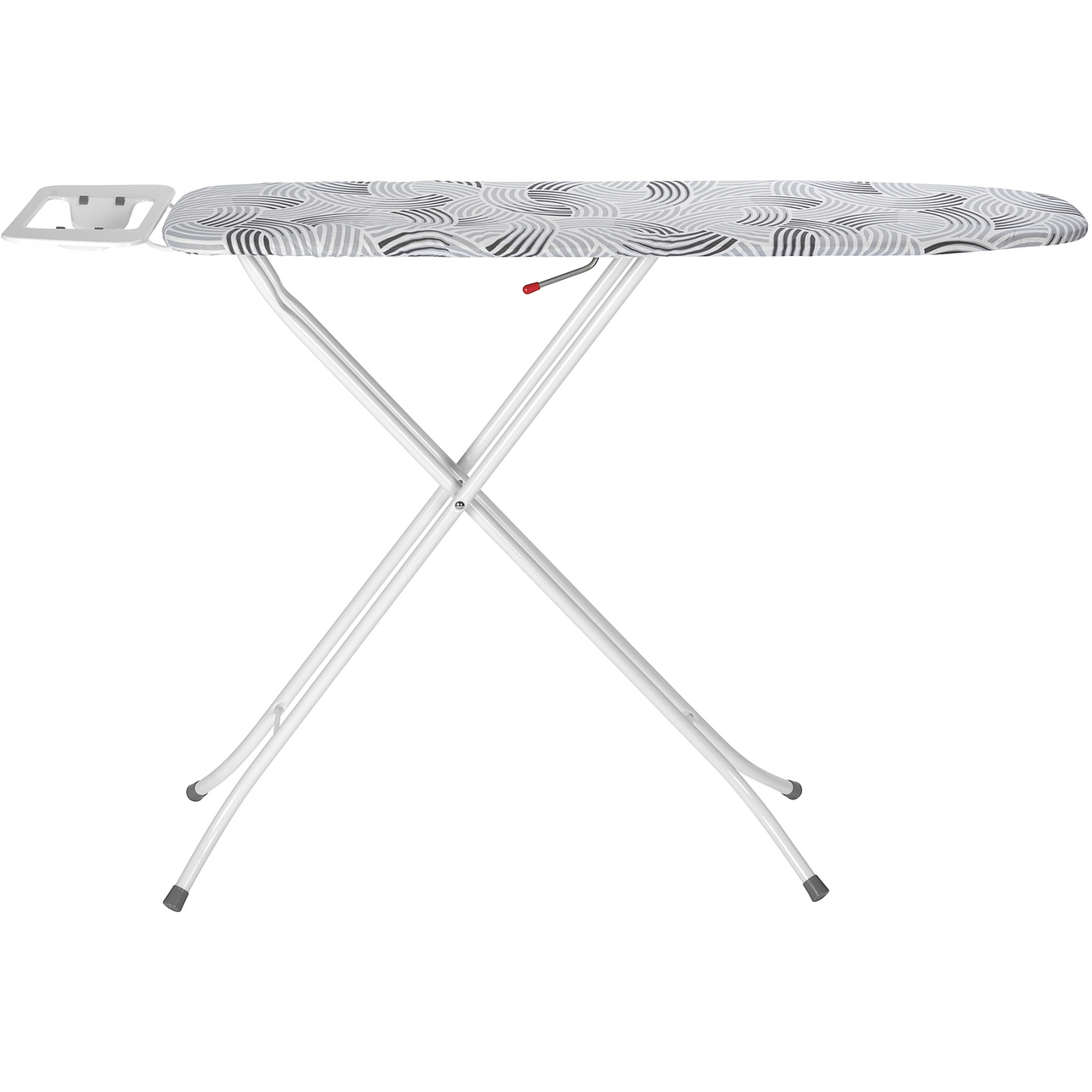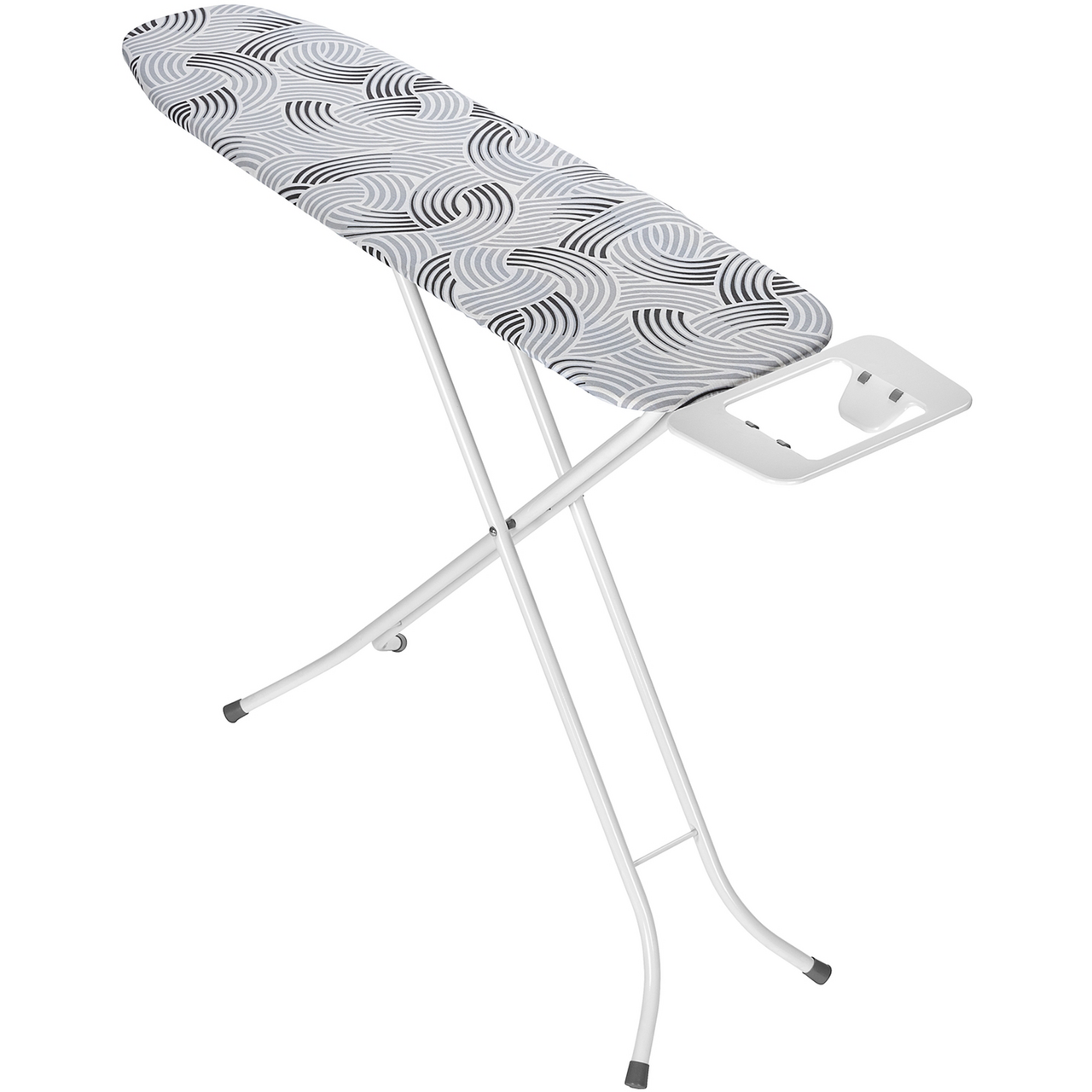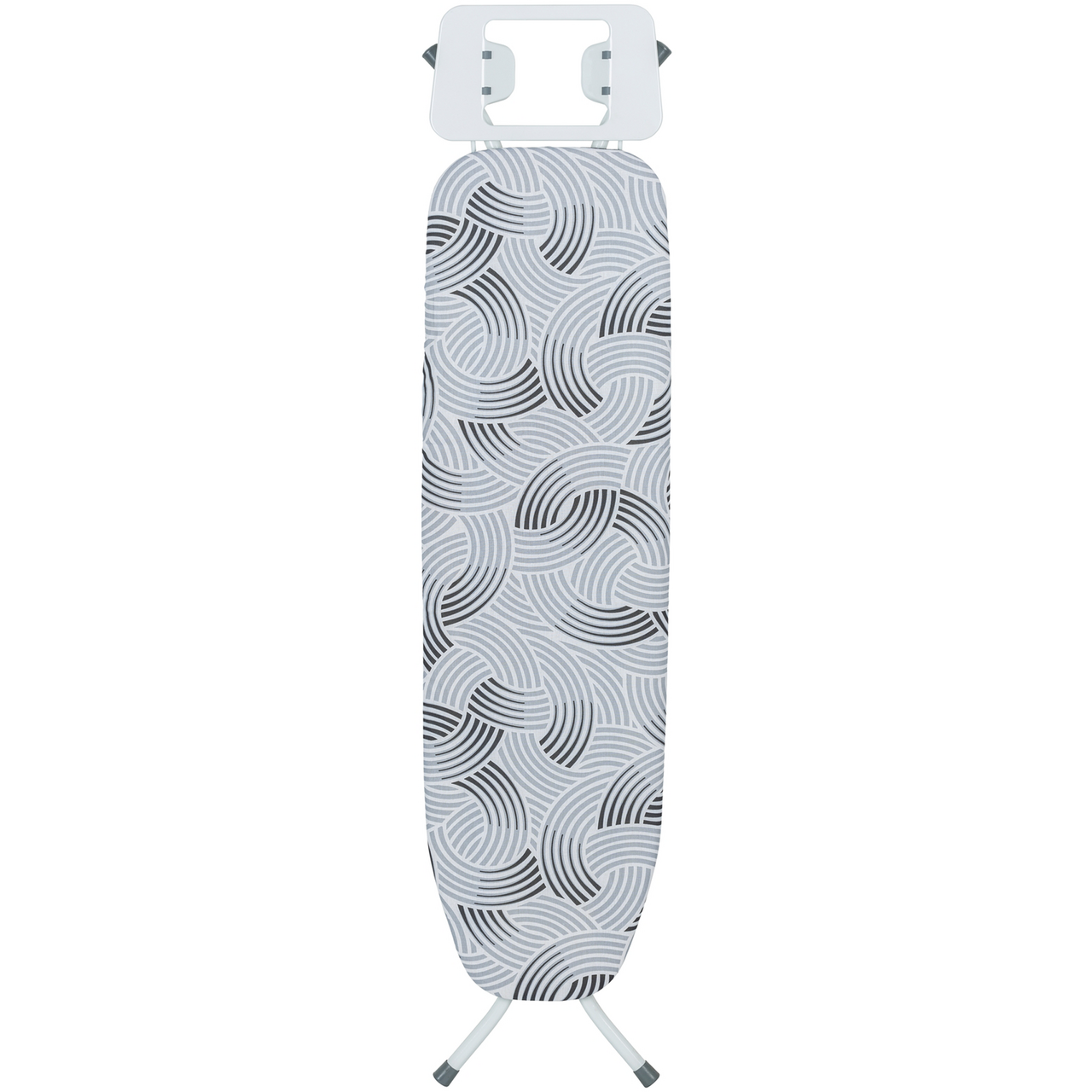 Dette strykebrettet fra Wenko er solid og rustbeskyttet, med hvitlakkert metall. Det grå bomullstrekket med 5 mm skumfylling sikrer jevn og rynkefri stryking, også ved bruk av dampstrykejern.