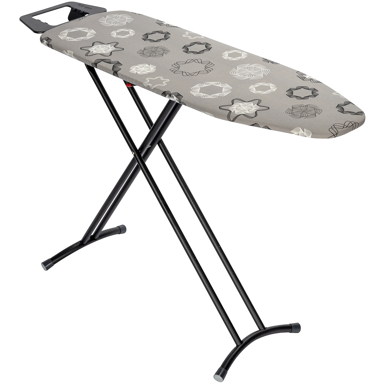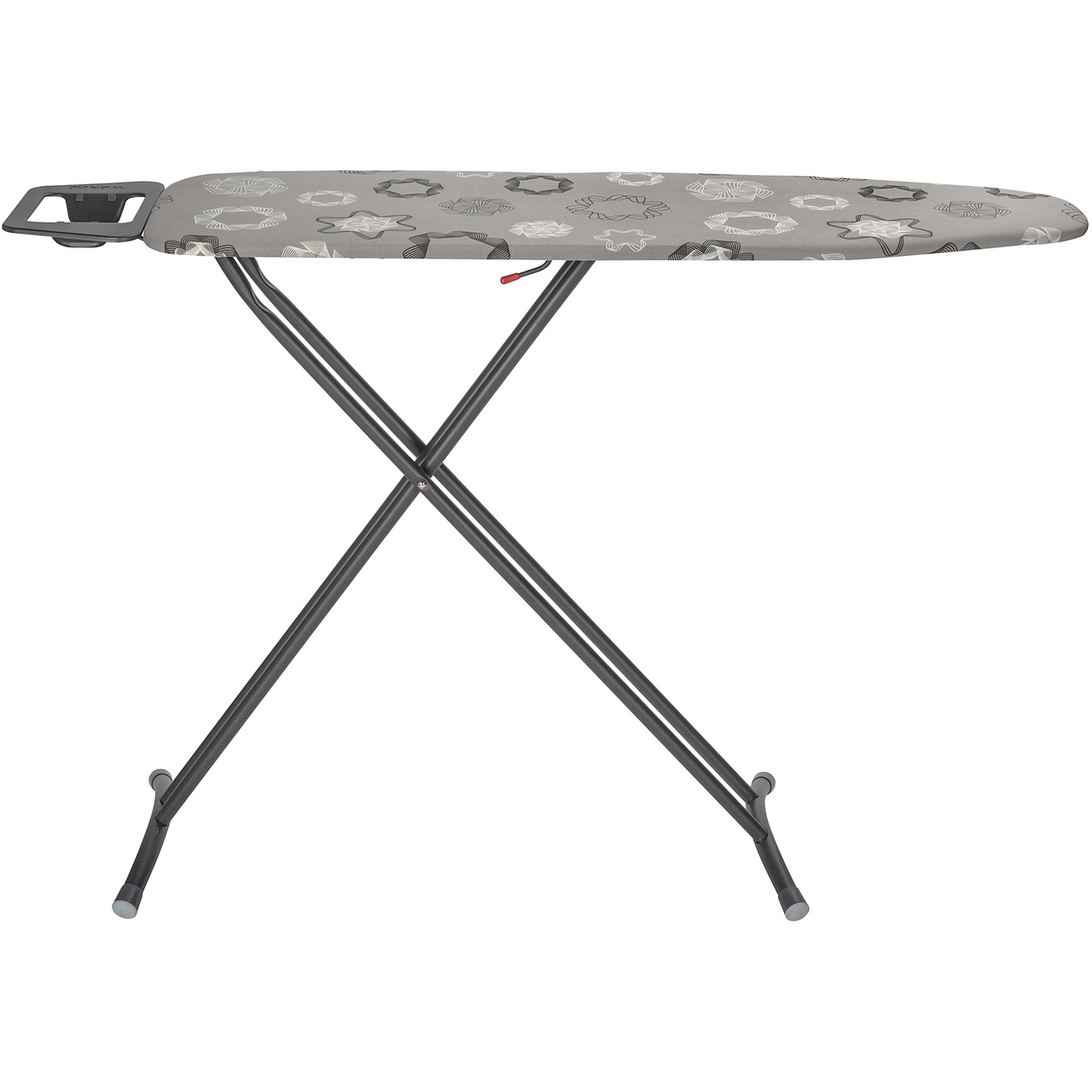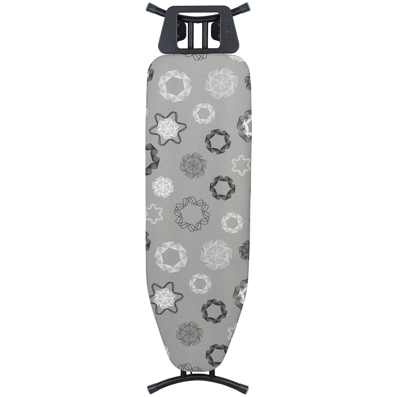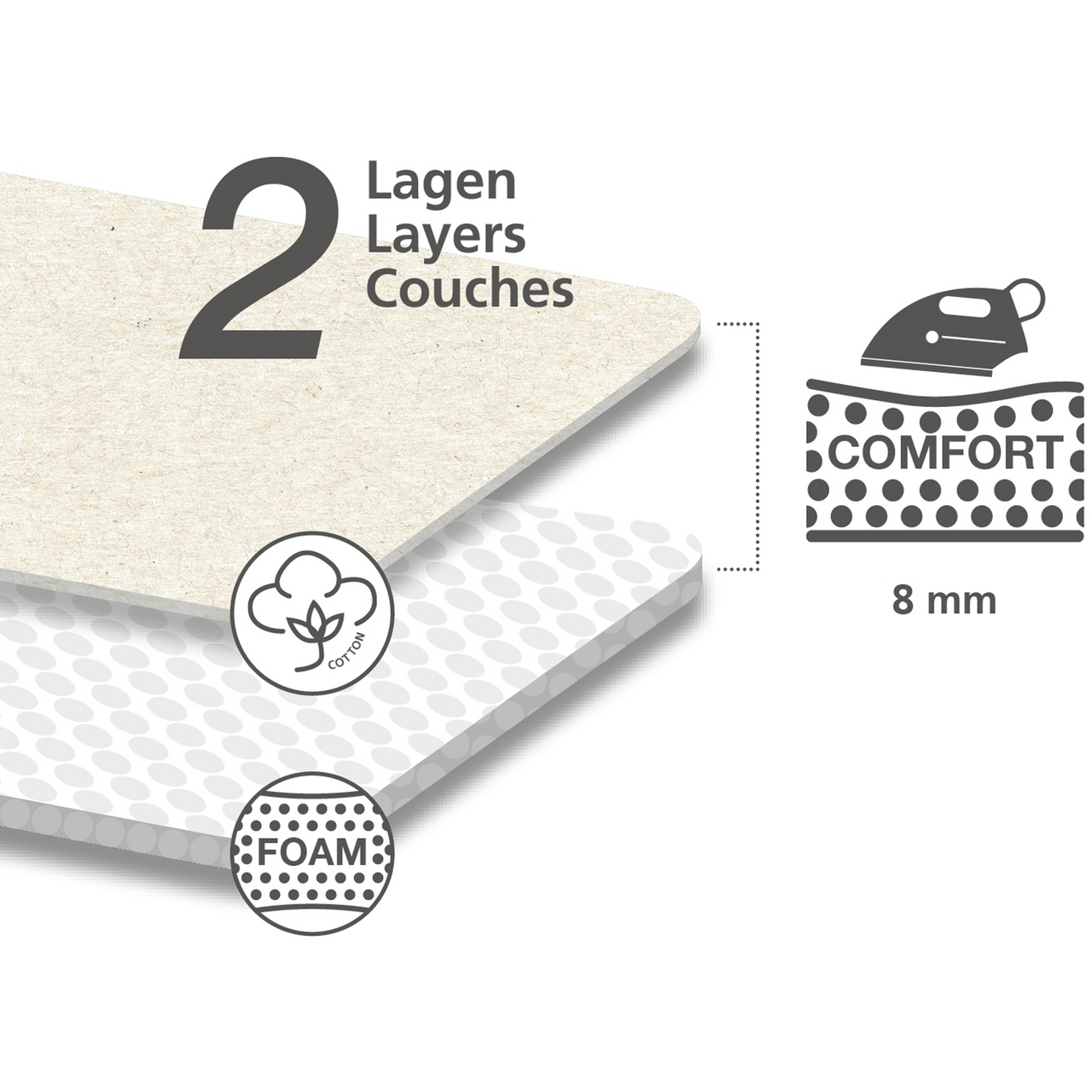 Dette strykebrettet fra Wenko er solid og rustbeskyttet, med hvitlakkert metall. Det grå bomullstrekket med 5 mm skumfylling sikrer jevn og rynkefri stryking, også ved bruk av dampstrykejern.