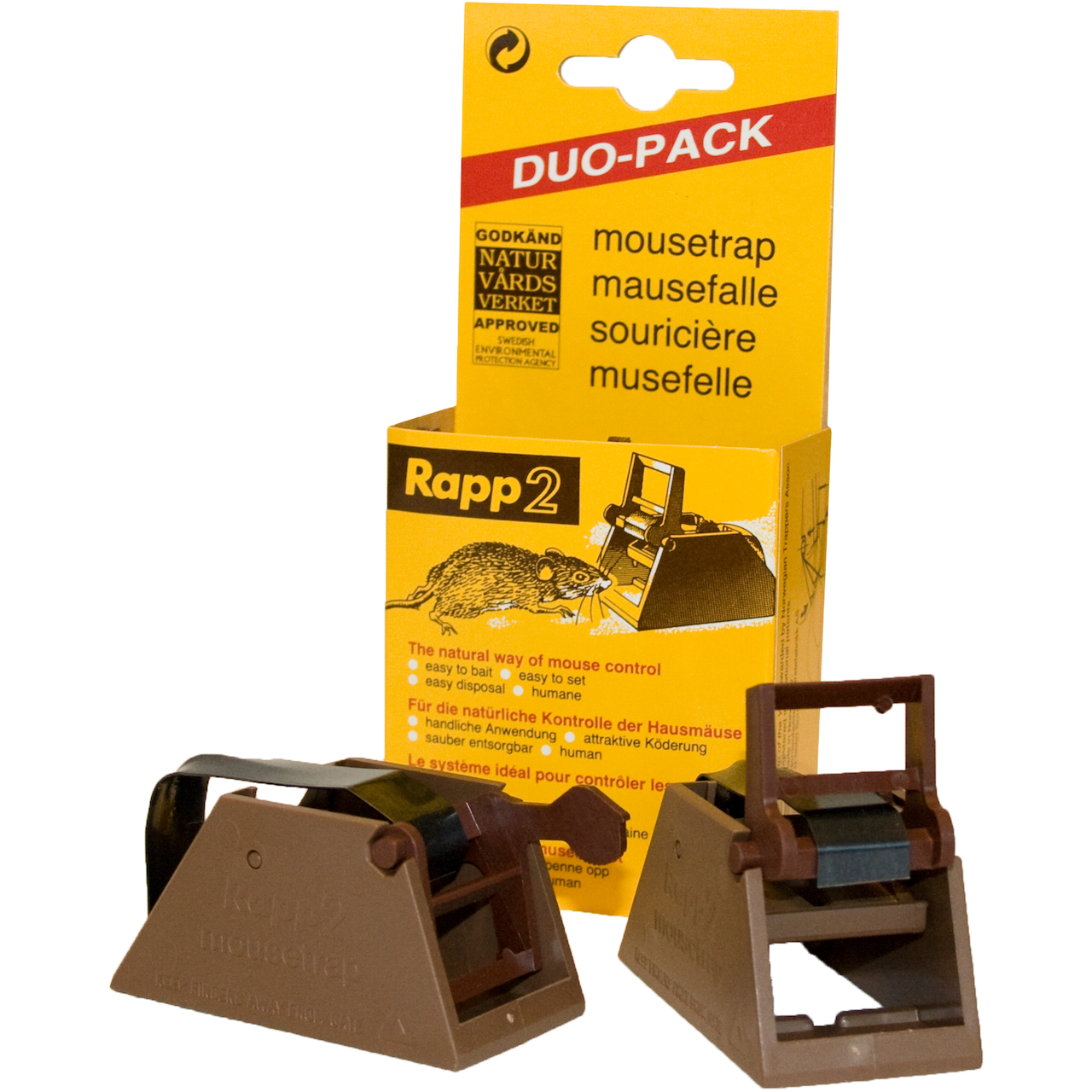 Rapp 2 i plast er en effektiv musefelle som er enkel i bruk. Spennes opp og legger åte løst i fellen. Enkel og tømme. Pakke med 2 stk. Rapp musefelle er norsk og anerkjent som en meget god felle. Åtet er viktig for å tiltrekke seg mus og rotter. Ost er tradisjonelt mye brukt, men eks peanøttsmør, spekepølse fungere også godt. Generelt skal feller plassere langs veggen for best effekt.