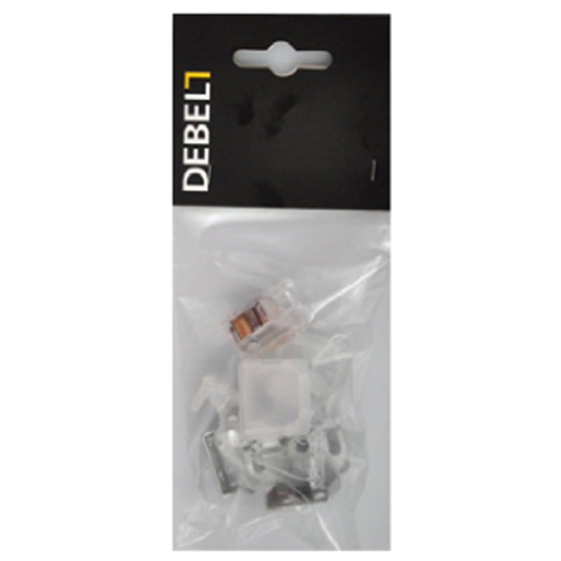 Dette settet til plisségardiner fra Debel inneholder beslag, bunnplugger, topplugger og hold-down beslag.