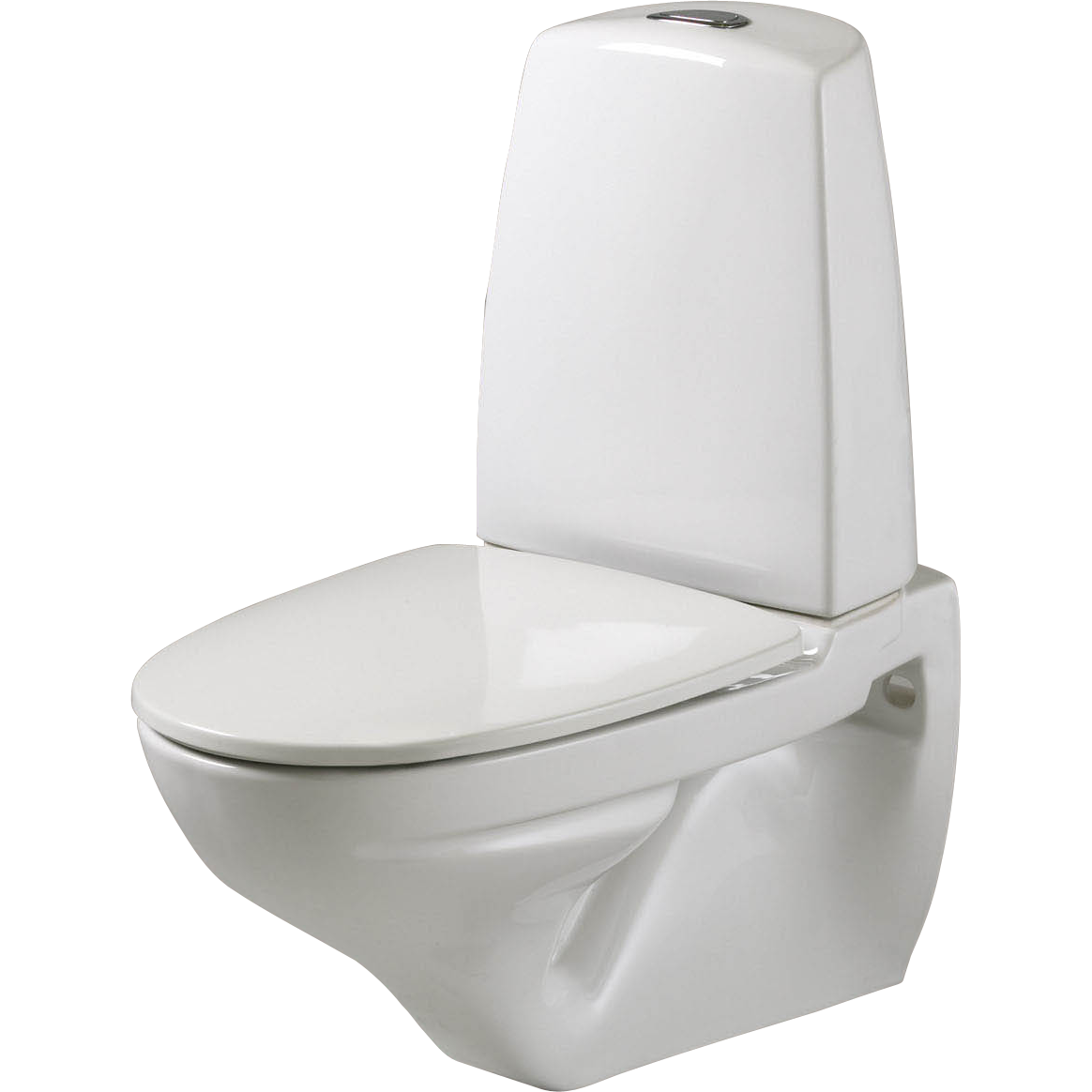 Vegghengt toalett med utenpåliggende hel sisternekappe for enklere rengjøring og det forhindrer kondens på utsiden av sisternekappen. Under spyleknappen finnes en dufttablett, Fresh WC. Duftstaven avgir frisk duft, forenkler rengjøringen og farger vannet vakkert blått ved hver nedspyling. Spyleknapp med to spylemengder: hel- og halvspyling, 4 og 2 liter.