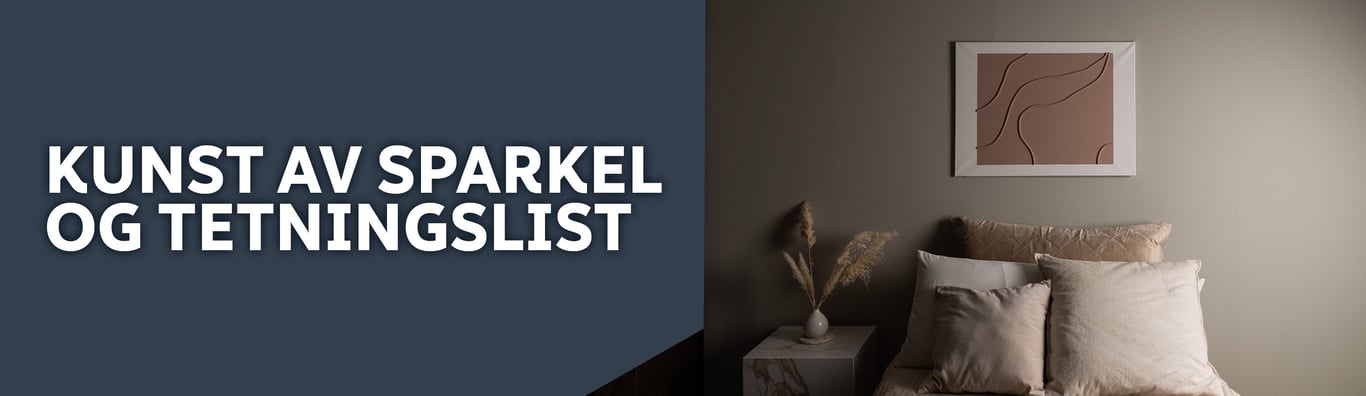 Sleng på et godt lag med sparkel på lerretet. Vi gikk for Nordsjø Finsparkel for en slettere overflate. Hvis man ønsker et røffere uttrykk kan man velge grovere sparkel. Dra ut sparkelen med en sparkelspade.