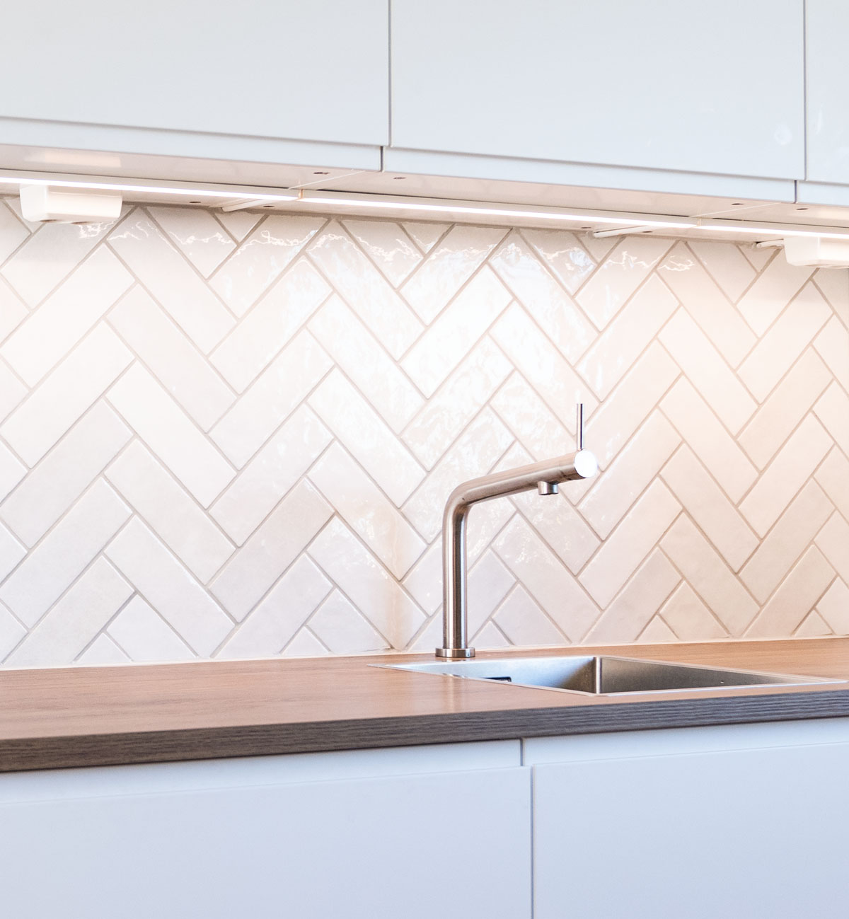 I vår video viser vi deg hvordan du enkelt kan legge fliser selv i fiskebeinsmønster. Vi har, i vår video, valgt å montere våtromsplater bak flisene, for å få et helt jevnt underlag. Man kan også fliselegge direkte på eksisterende rett vegg, eller rett på gamle fliser. Et solid og jevnt underlag er nøkkelen for et godt og holdbart resultat.