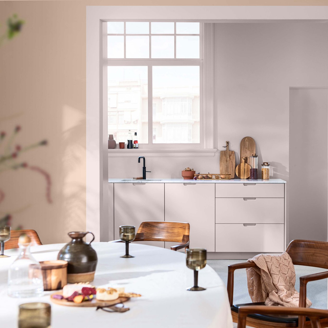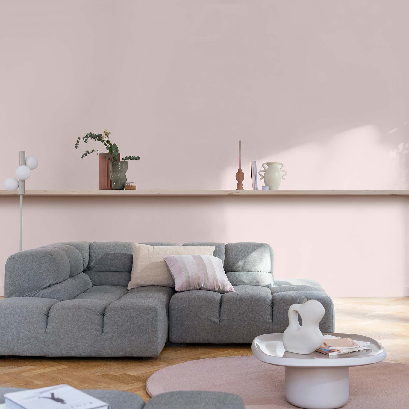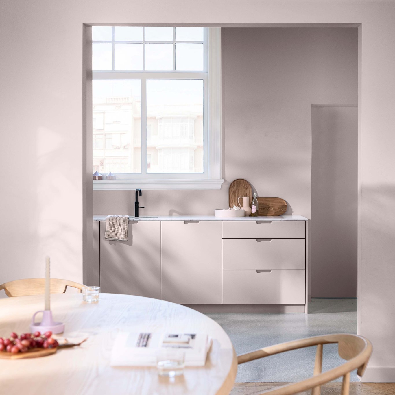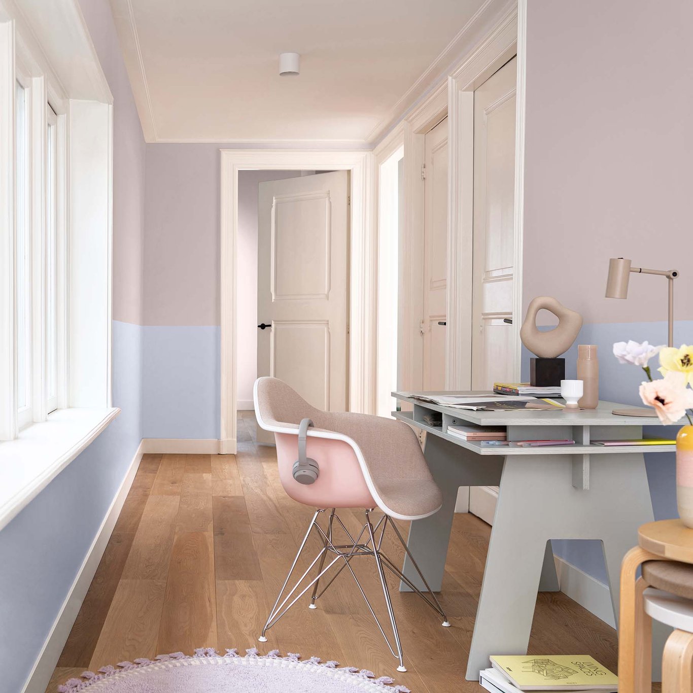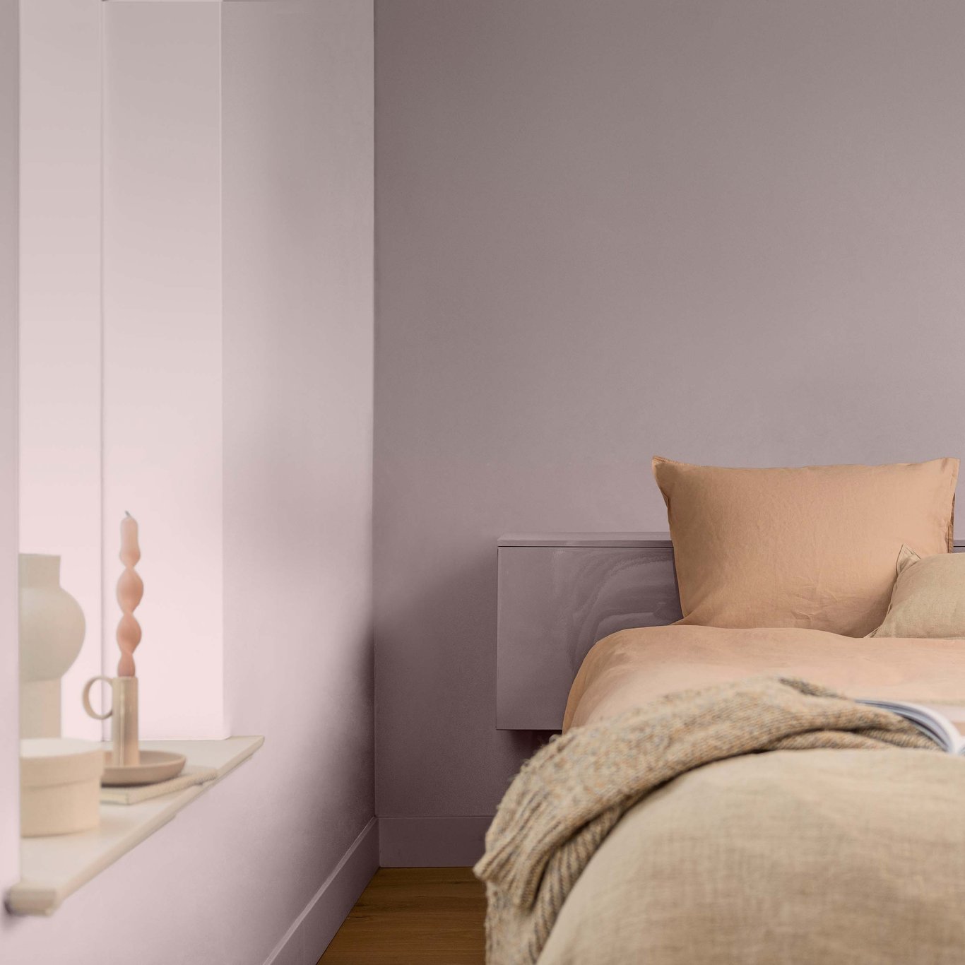 Fargen Sweet Embrace er en mild og delikat farge som gir en følelse av positivitet. Den er inspirert av myke fjær og kveldsskyer, og er en farge som er både fin og enkel å kombinere med andre farger og nyanser. Sweet Embrace gir forskjellige toner i forskjellige lys, og vil gi rommet et diskret og sofistikert uttrykk.