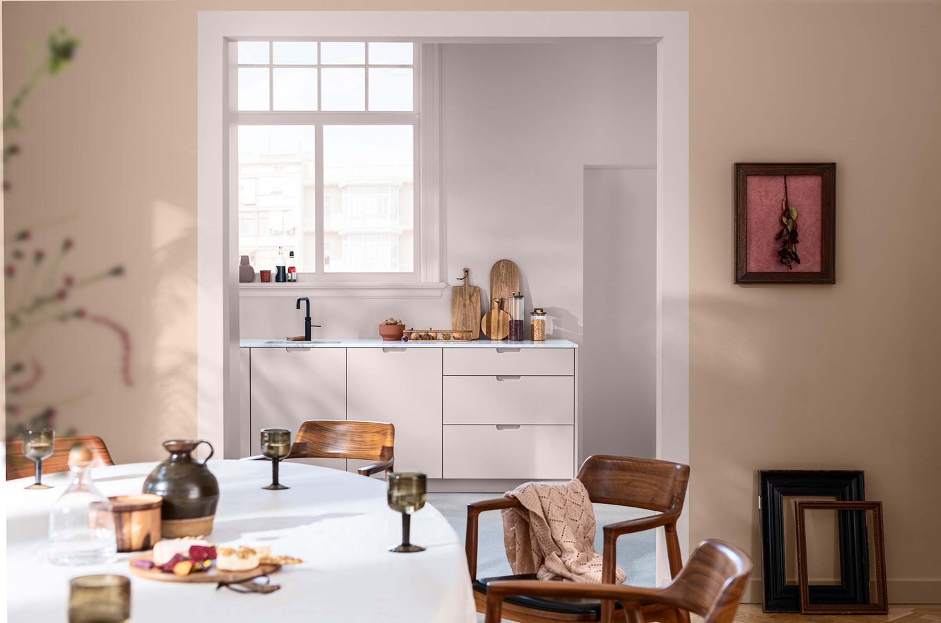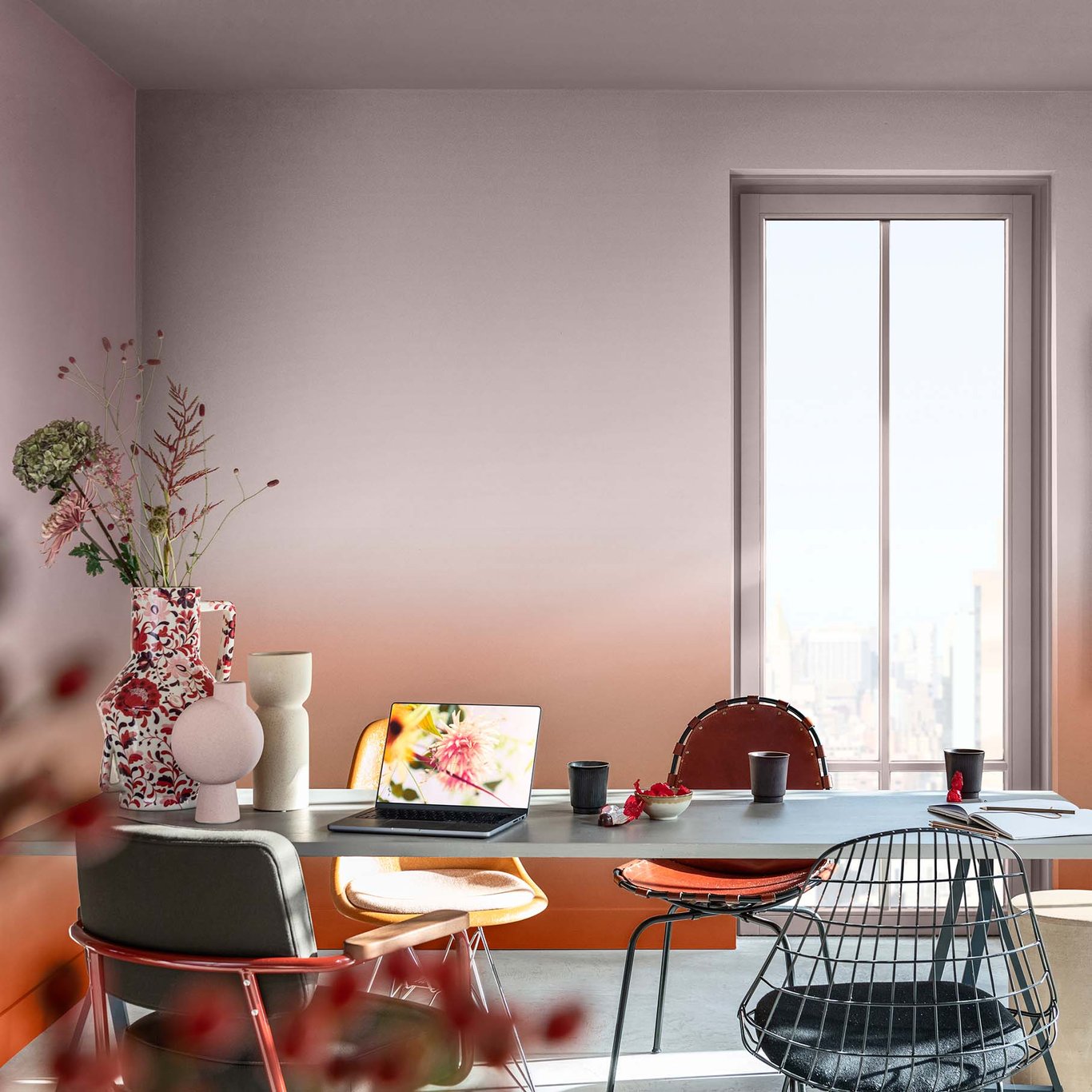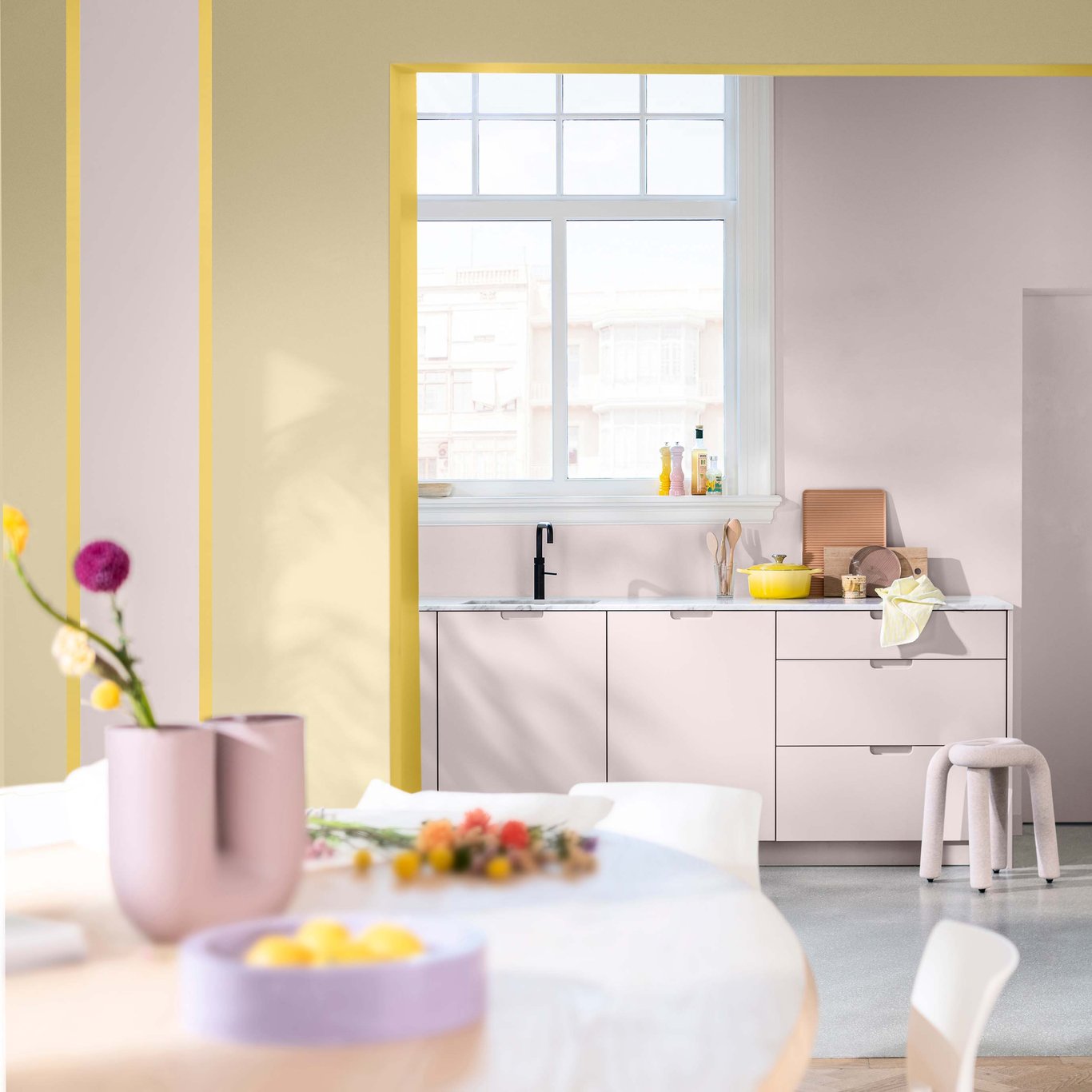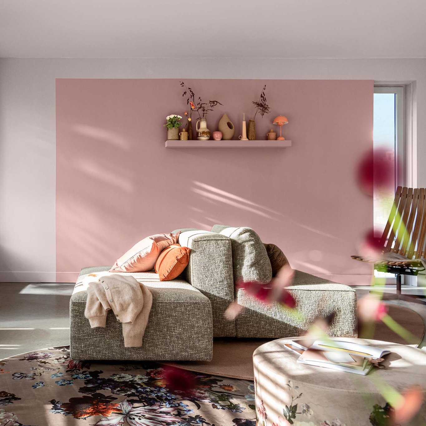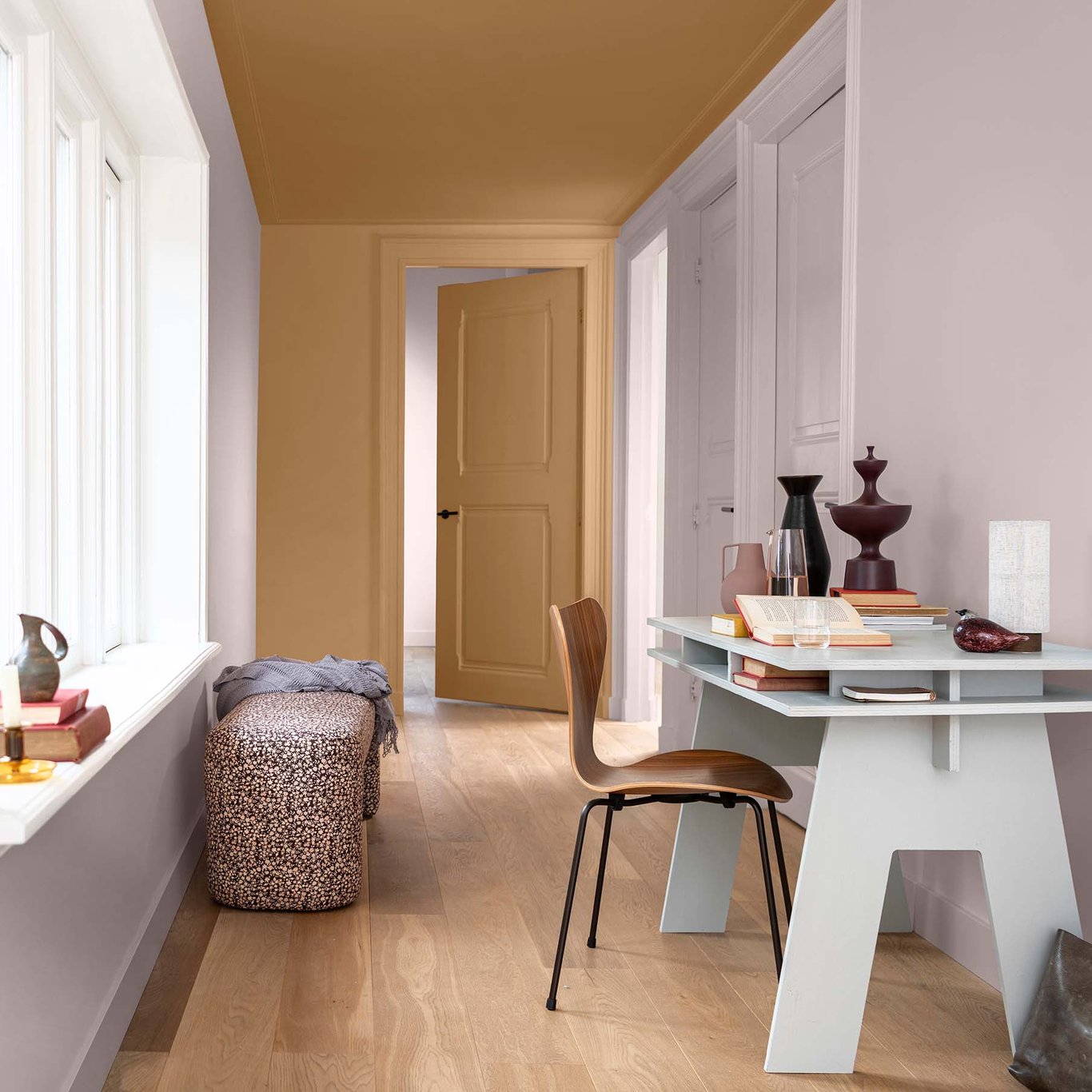 Fargen Sweet Embrace er en mild og delikat farge som gir en følelse av positivitet. Den er inspirert av myke fjær og kveldsskyer, og er en farge som er både fin og enkel å kombinere med andre farger og nyanser. Sweet Embrace gir forskjellige toner i forskjellige lys, og vil gi rommet et diskret og sofistikert uttrykk.