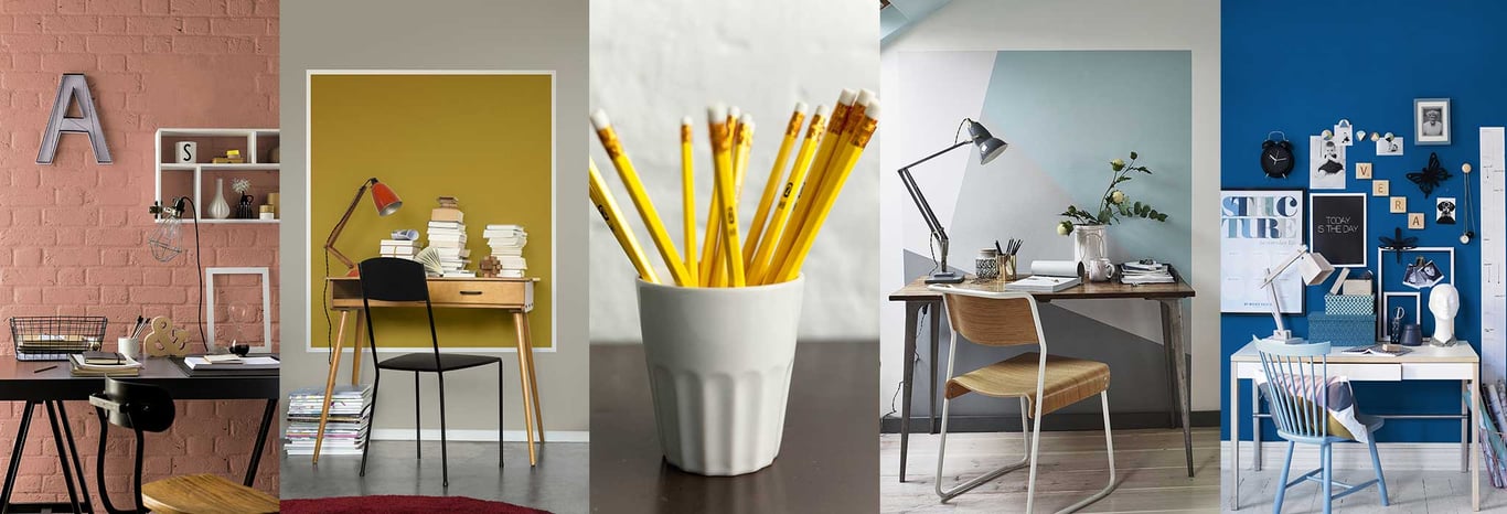 Å male en eller flere av veggene i hjemmekontoret er en enkel måte for å få en rask og enkel forandring – og også skape en følelse av privatliv som er nødvendig for et hjemmekontor.