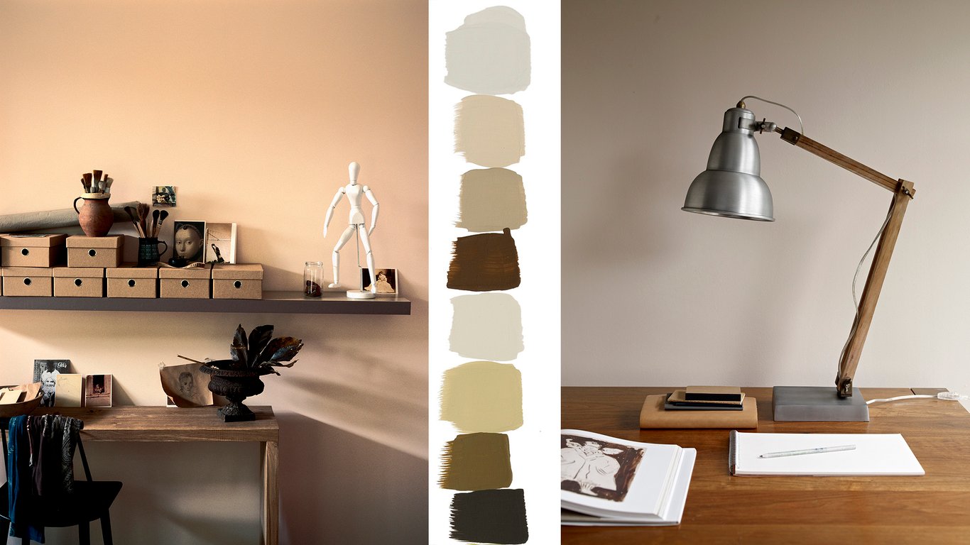 Mal gjerne veggene med en vakker grå, jordaktig nyanse, eller en varm brun nyanse.