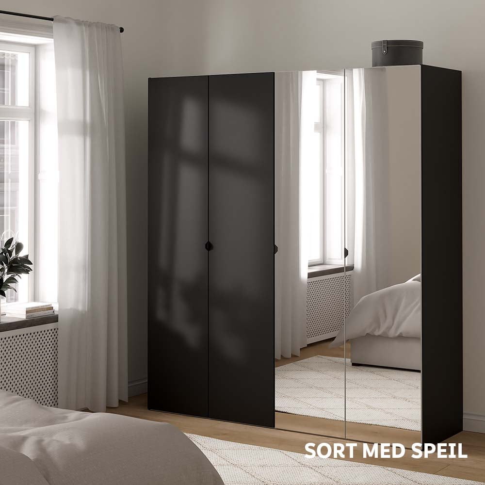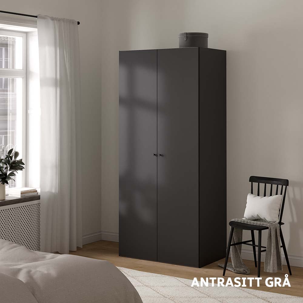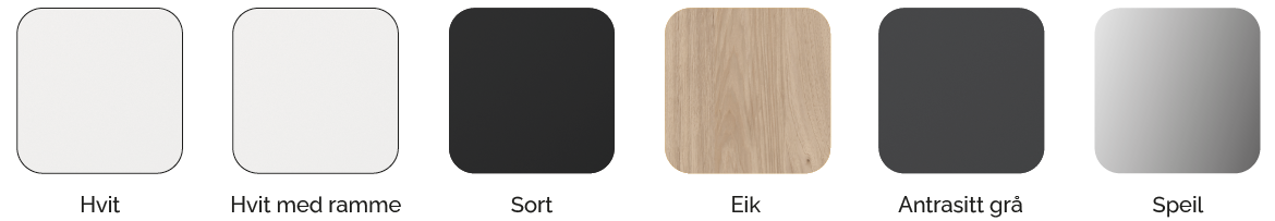 Frontene til garderobeskapene og skyvedørsgarderobene kommer i fargene hvit, hvit med ramme, sort, eik, antrasitt grå og speil.