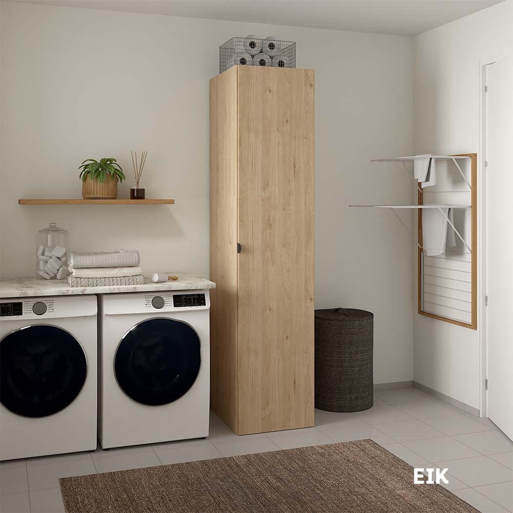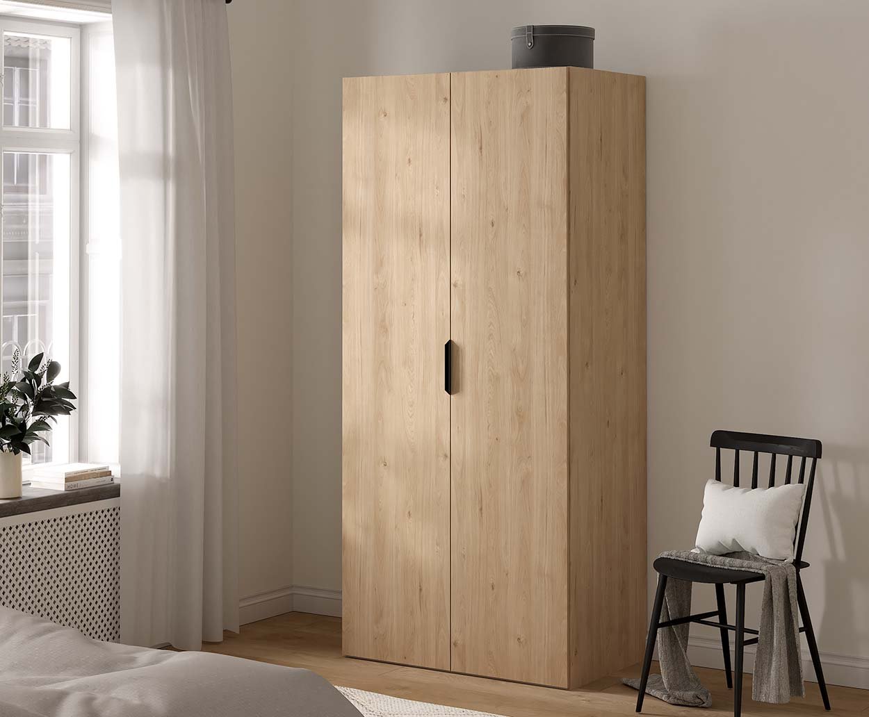 Alle Lind Nest-garderober har en dybde på 60 cm, og en høyde på 220 cm. Minimumsbredden er 50 cm, og de kan bygges uendelig langt med moduler på 50 og 100 cm. Du kan velge mellom vanlige hengsler eller hengsler med soft close, og som innredning kan du legge til skuffer med soft close, trådkurver i metall, garderobestang og hyller for å tilpasse garderoben etter dine behov. Blant våre ferdige pakkeløsninger finner du garderobeskap i størrelse 50 - 200 cm.