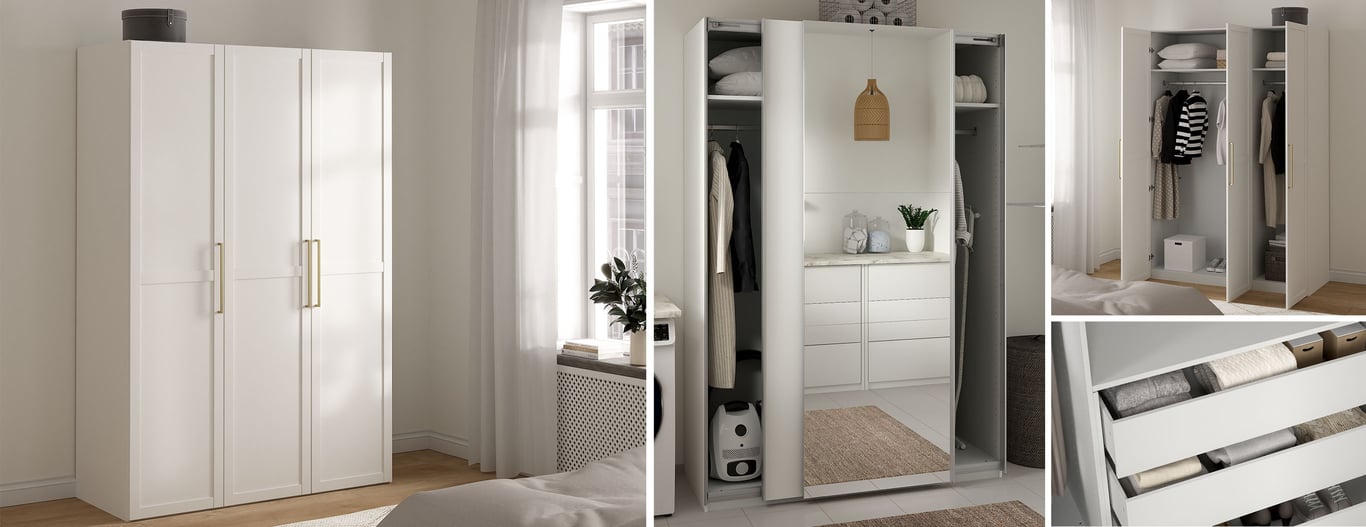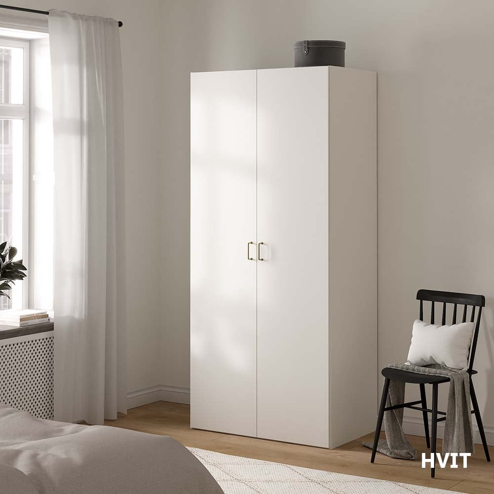 Skap din drømmegarderobe med Lind Nest! Du kan velge blant ferdige pakker som vi har satt sammen, eller skreddersy din egen løsning ved å kjøpe bestanddelene. Velg mellom garderobeskap og skyvedørsgarderober, og interiør som skuffer, trådhyller og mer.