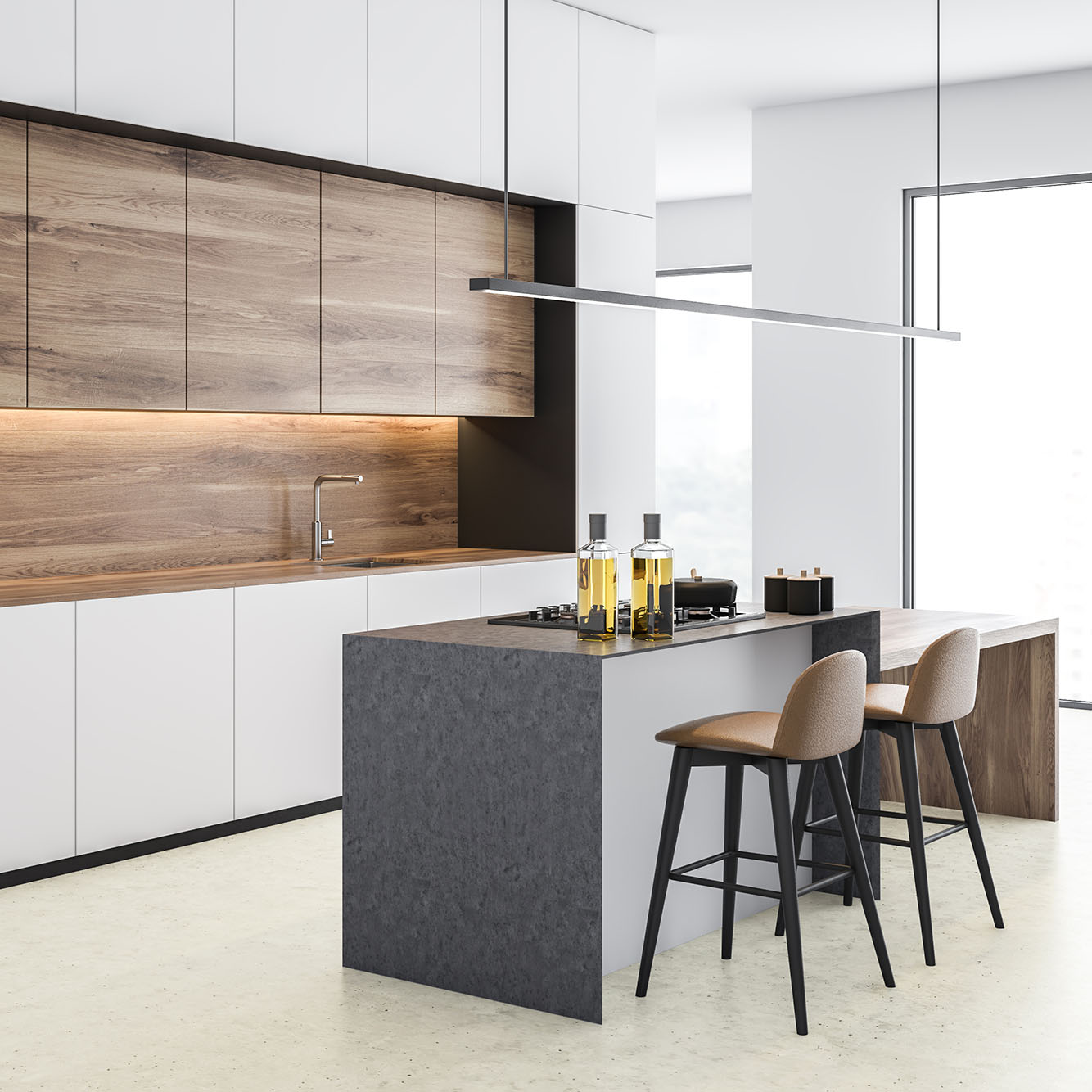 Mikrosement med medium struktur gir mer karakter og dybde til overflaten. Med en lett ruhet og synlige teksturbevegelser skaper den et mer levende og håndlaget uttrykk. Den passer perfekt i rom der man ønsker å tilføre varme, taktilitet og en tydeligere materialfølelse – enten det er på gulv, vegger eller benkeplater.