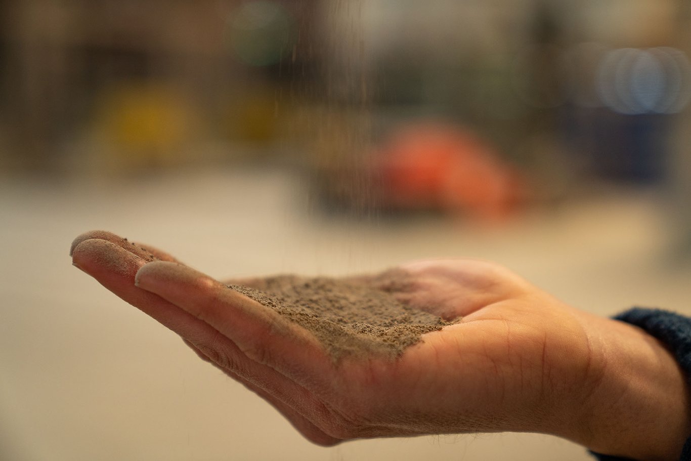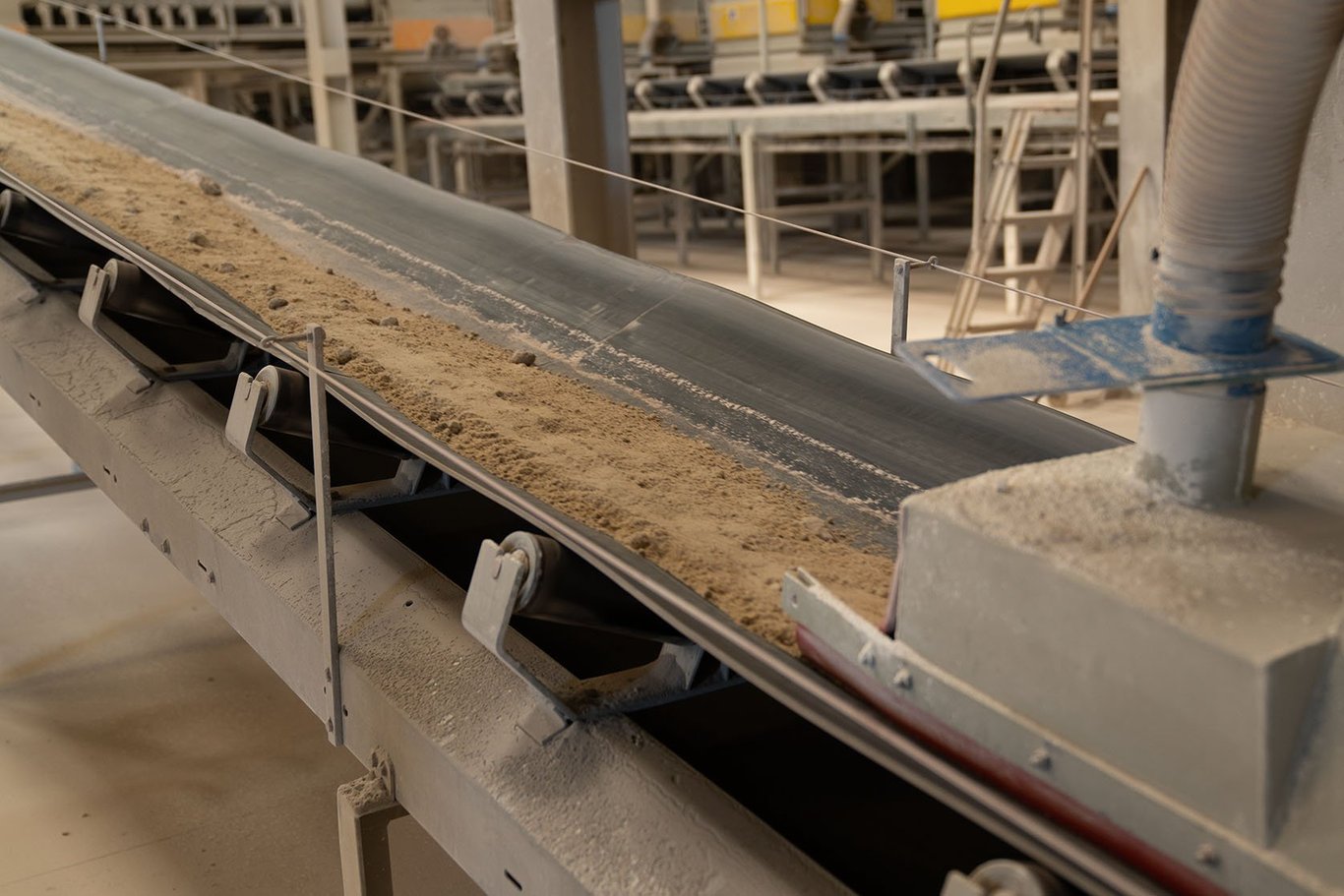 For å få en helt finkornet sand slynges sand og leire rundt i store siloer, som spanjolene kaller atomizadores, sammen med aluminiumskuler og varm damp. Når denne massen senere presses blir resultatet en finkornet blanding av sand og leire som danner grunnlaget for neste skritt i produksjonen.
