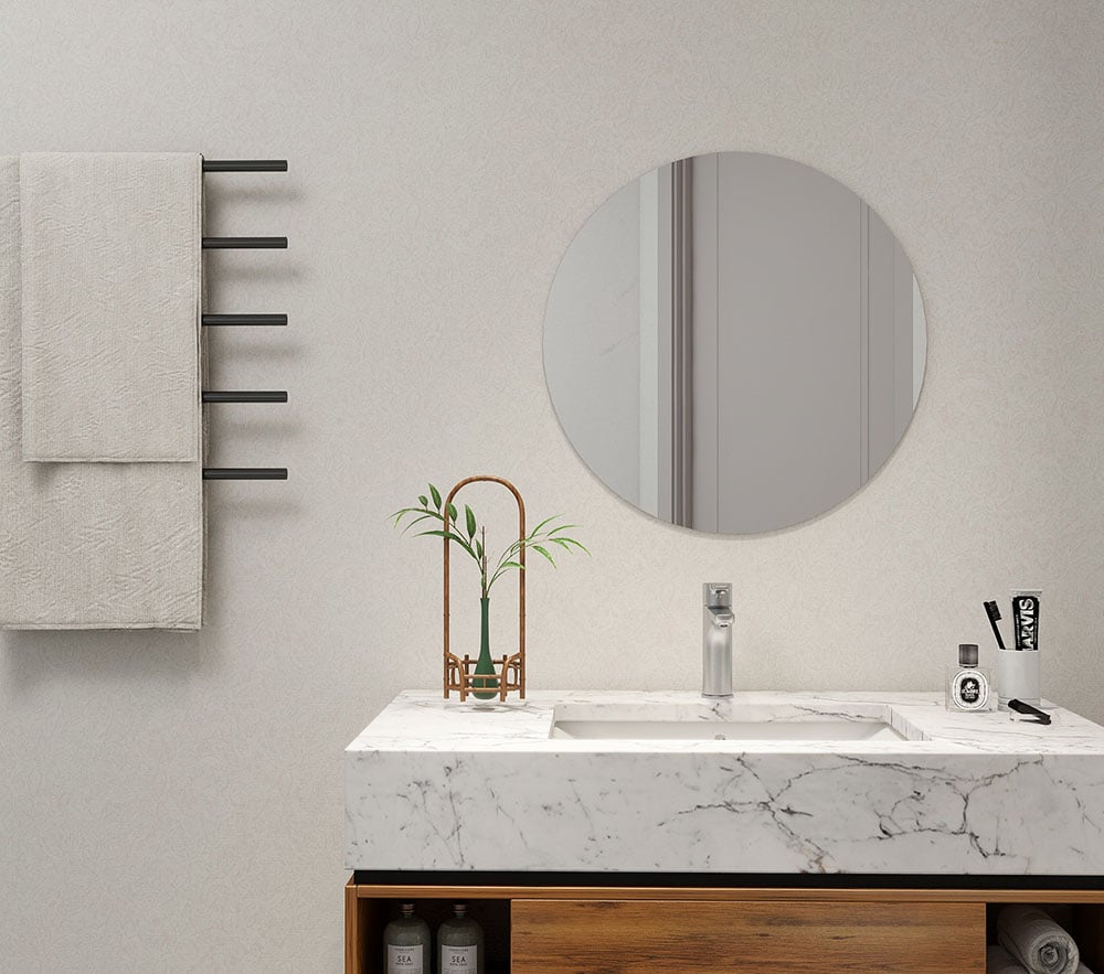 Et fint speil kan gjøre en stor forskjell på små bad - både når det gjelder romfølelse og lys. Et klassisk speil gir en enkel og stilren look, mens speil med lys gir en ekstra funksjon og stemning. Har du behov for mer oppbevaring vil et lite speilskap være en smart løsning. Da får du både en speilflate og skjult lagring av baderomsprodukter. Uansett hva du velger, bidrar speilet til å åpne opp rommet og gjøre badet enda stiligere.