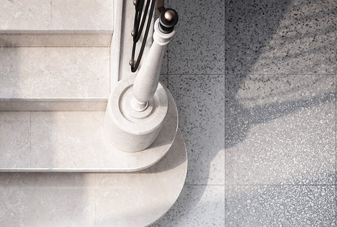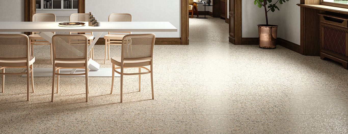 Historien om terrazzo går langt tilbake i tid, helt tilbake til Venezia på 1400-tallet. Terrazzo er en blanding av sementmørtel og marmorkorn eller annen småstein, og resultatet er et slitesterkt og tidløst gulv med et variert og unikt mønster. Derfor har terrazzo vært mye brukt i offentlige bygninger og rom som for eksempel flyplasser og skoler, og den kjente Hollywood Walk of Fame.