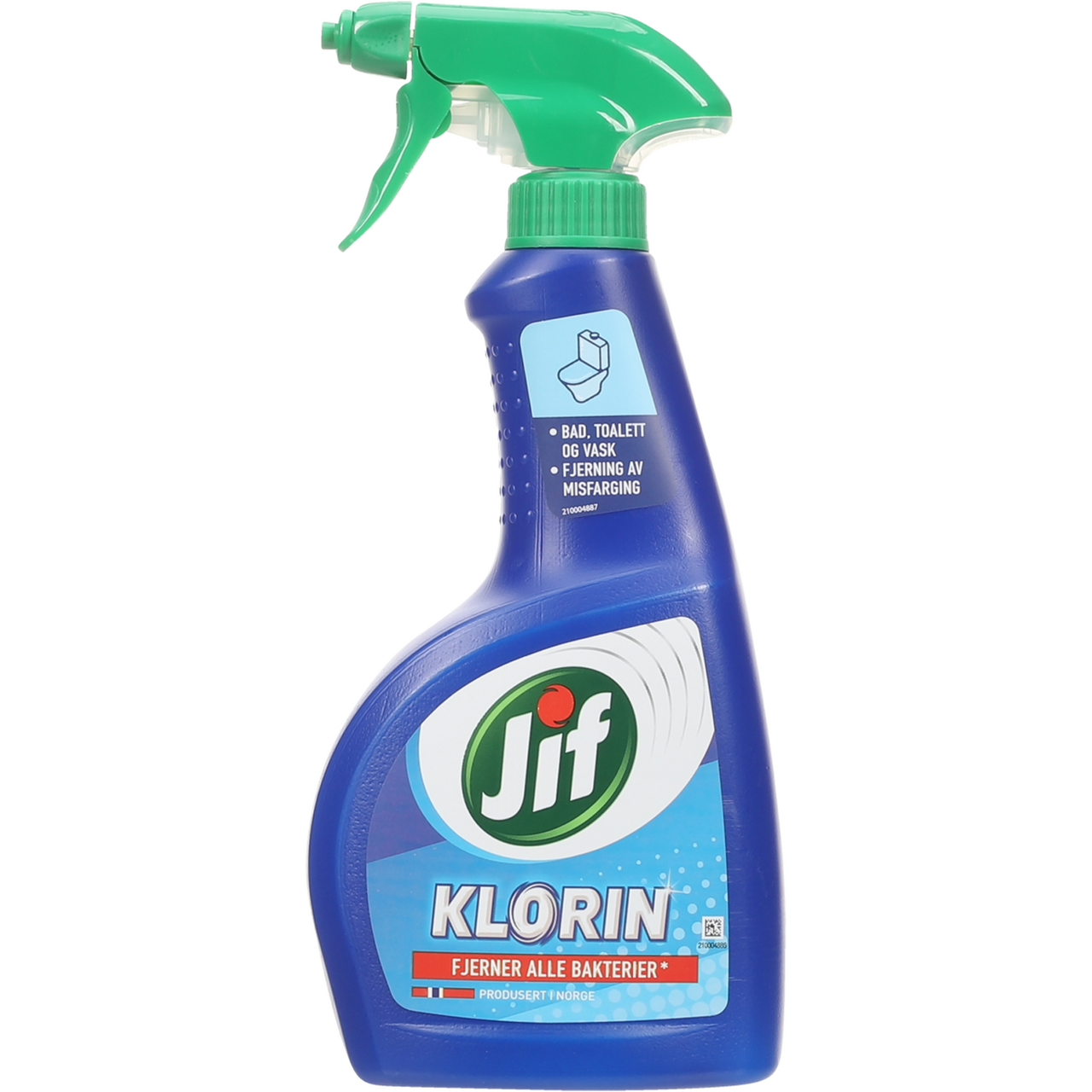 Jif Klorin Rengjøringsspray med klor gir hygienisk og grundig rengjøring.