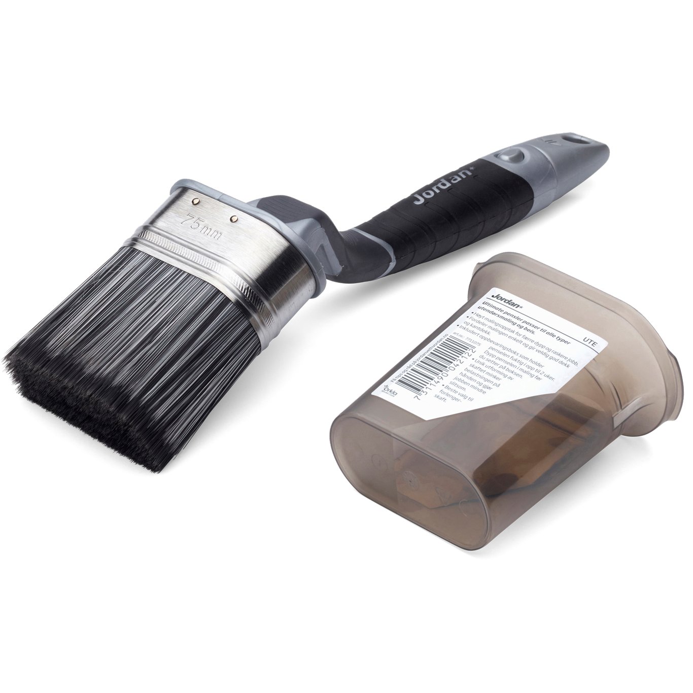 Denne vinklede penselen fra Jordan gir et suverent resultat på kanter og detaljer. Den er ment for malejobber utendørs, og har en optimal dekkevne.