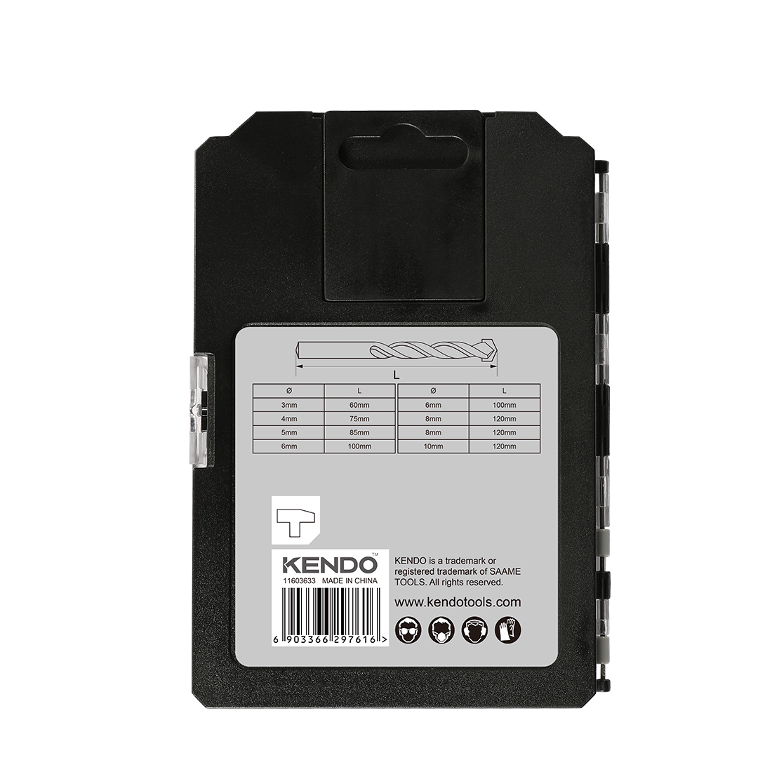 Kendo betongborsett i 8 deler, karbidspiss/40Cr. Størrelse: Ø3-4-5-6-6-8-8-10 mm.