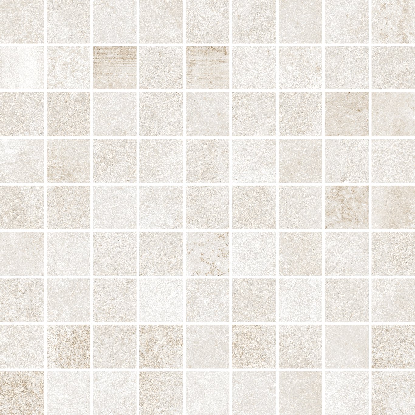 Rue de Paris Beige i størrelse 2,5x2,5 cm på nett 30x30 cm fra Keraben representerer en kombinasjon av fargetoner. Flisen består av lyse beigetoner, med innspill av mørkere områder i en lys og behagelig miks i et mønster som kan minne om betongstruktur.