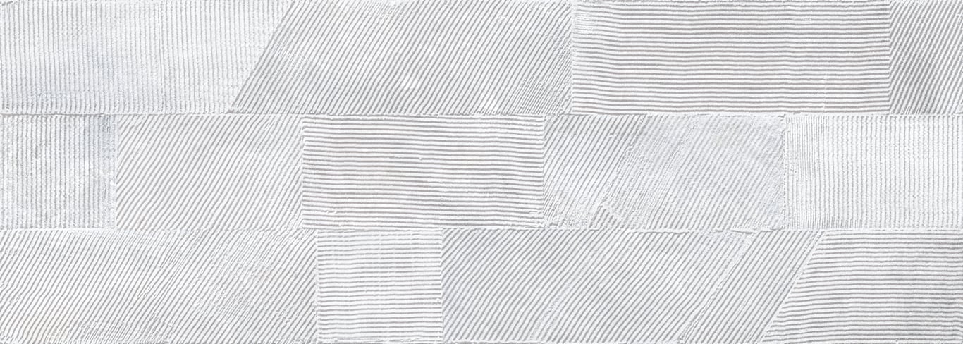 Rue de paris blanco concept 25x70 er en lekker veggflis med en struktur av striper i ulike retninger. Stripene danner et spennende og behagelig mønster.