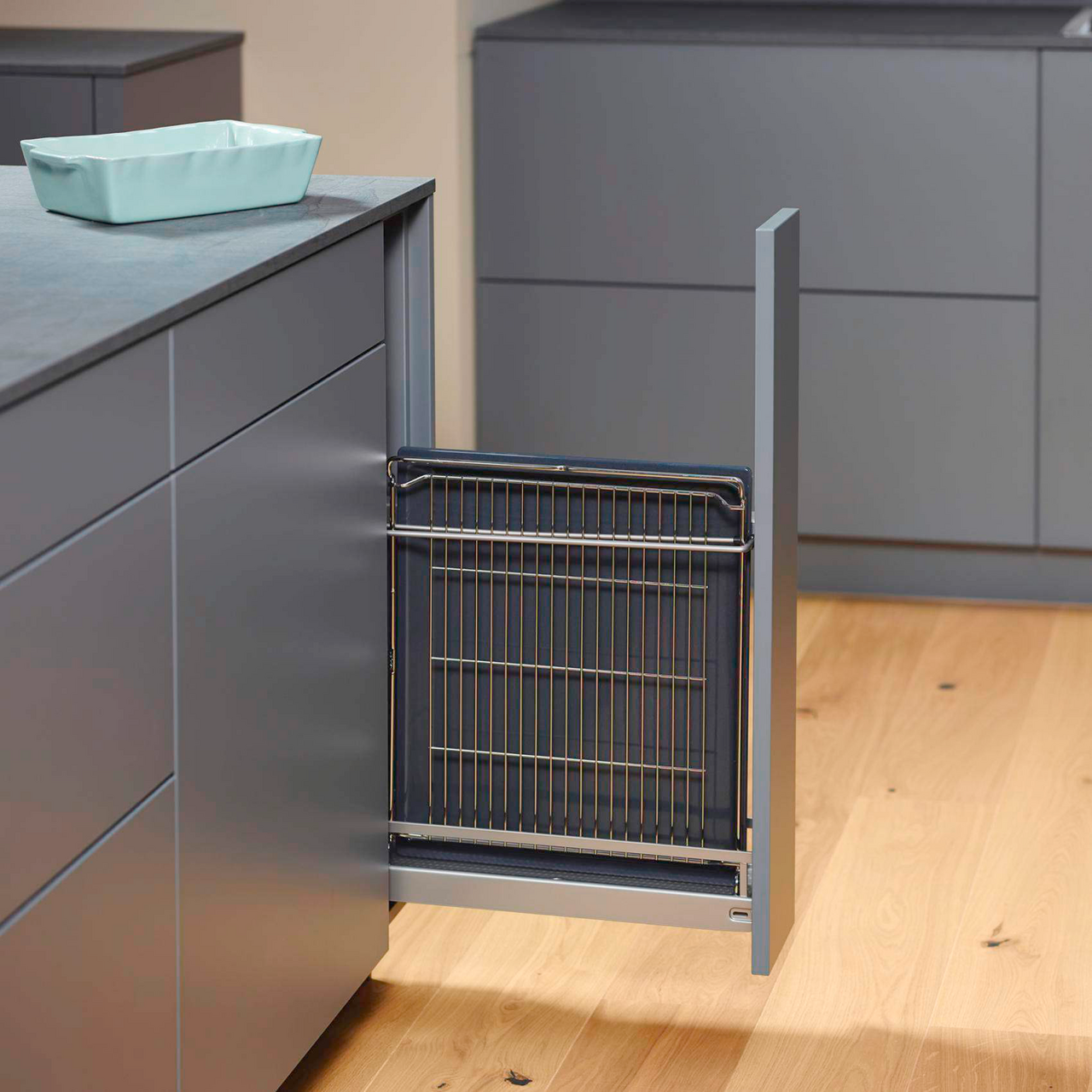 Det lille skapet er optimalt for oppbevaring av for eksempel stekeplater, krydder eller håndklær.