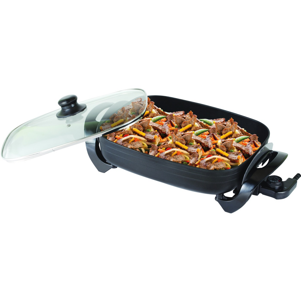 Denne elektriske stekepannen er perfekt til buffé‚ eller til tilbereding av mat som for eksempel supper, paella, omelett, blåskjell eller pizza.