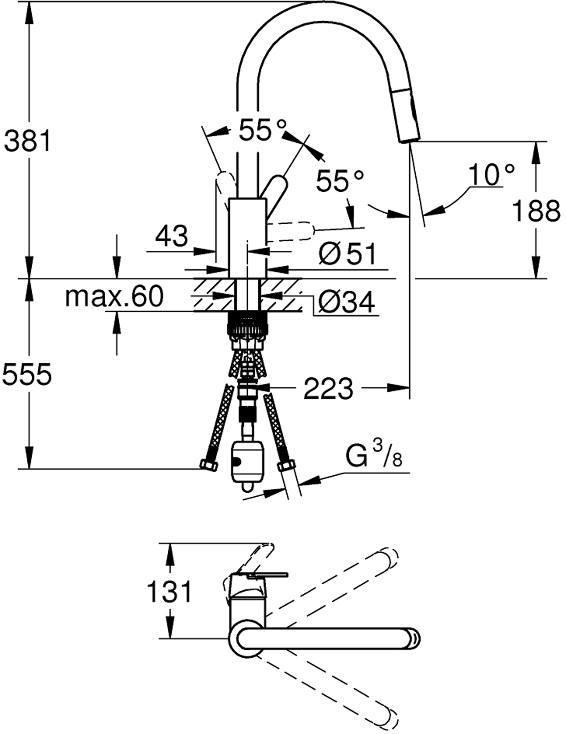 etthullsmontasjeGROHE SilkMove 35 mm keramisk PatronGROHE StarLight krom overflateGROHE Zero innvendig isolerte vannveier - bly- og nikkelfrivariable justerbar volumbegrensersvingbar rørtutsvingradius 360°GROHE EasyDock garanterer enkel inntrekking og glatt docking tilbake til utgangsposisjonenUttrekkbar spray dobbelomstiller: laminar spray / SpeedClean jet-dusjfleksible tilkoblingsslangermed tilbakeslagsventilVann- og avløpsinstallasjoner må installeres av rørlegger.
