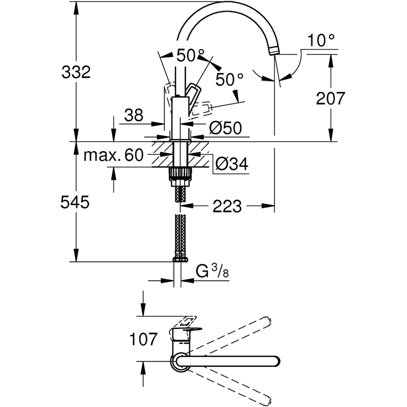 høy tutetthullsmontasjeGROHE Long-Life 28 mm keramisk patronGROHE Long-Life Shine overflateinnvendig isolerte vannveier - bly- og nikkelfrimed perlatorsvingbar rørtutsvingradius 360°fleksible tilkoblingsslangerGROHE FastFixation Plus kjempe rask og enkel installasjon - trenger ingen verktøymin. trykk 1.0 barVann- og avløpsinstallasjoner må installeres av rørlegger.