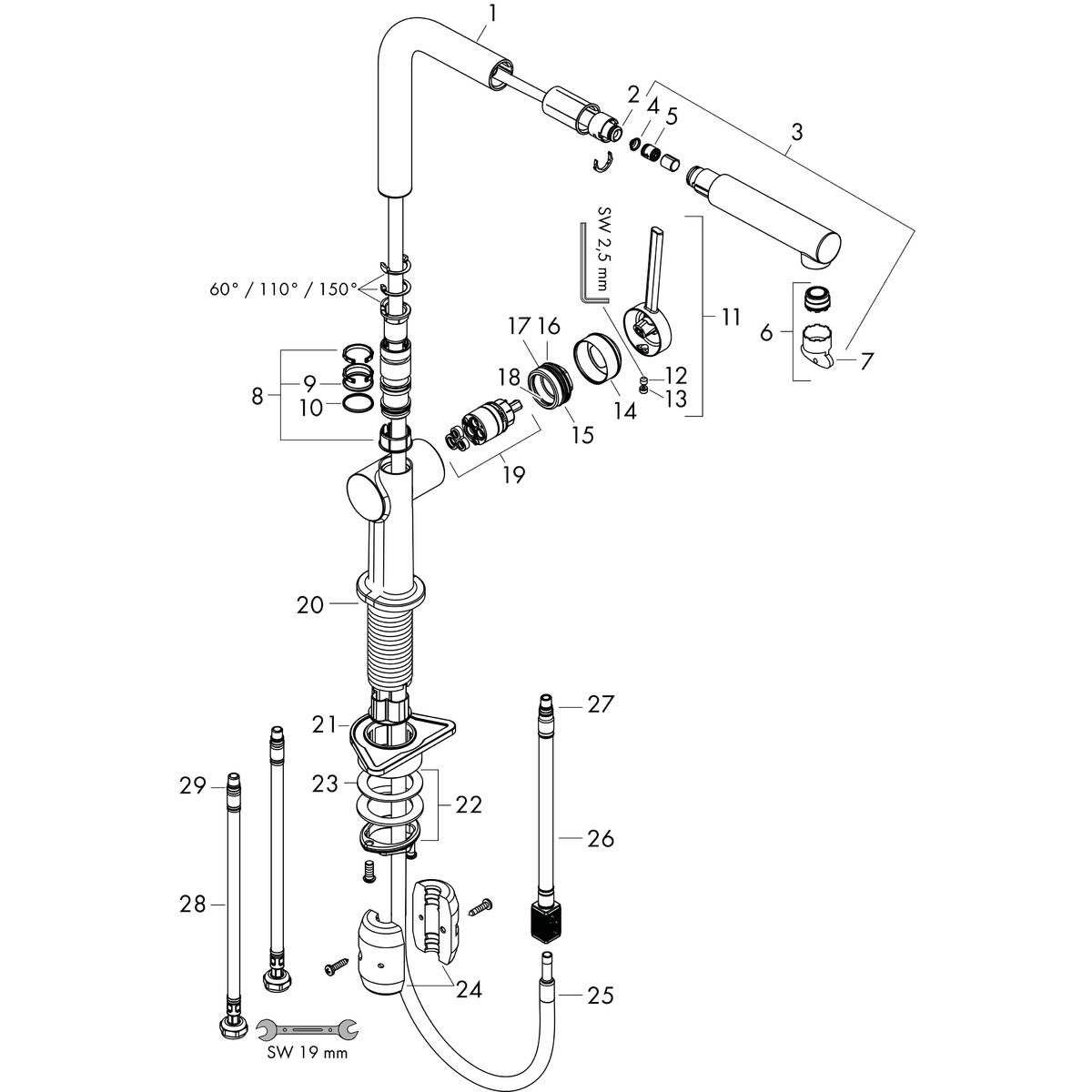 Svingområde 60°, 110°, 150° eller 360°Quick-Connect-slangerTilbakeslagsventil integrert
