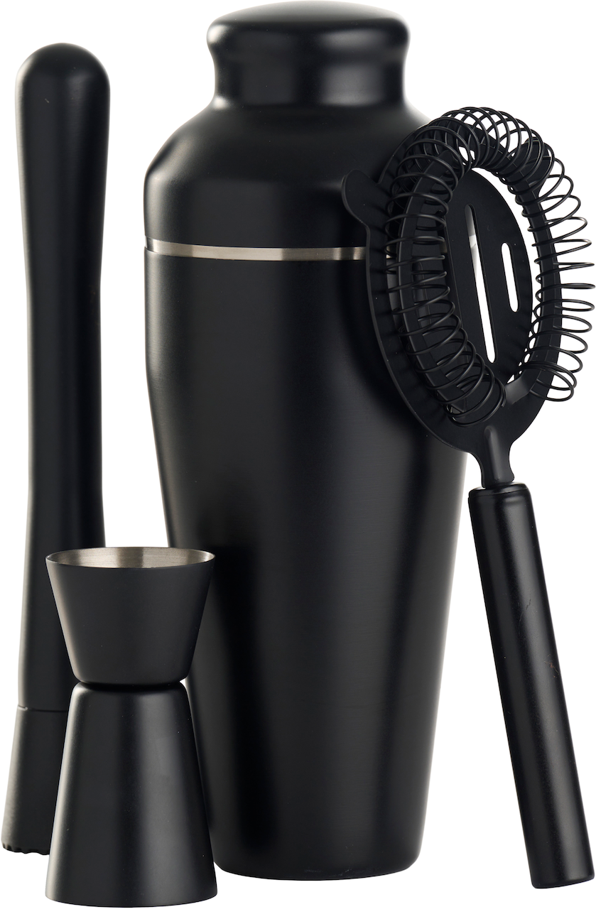Sort cocktail shaker fra Day i 4 deler. Kommer med shaker, målebeger, filter og stamper.