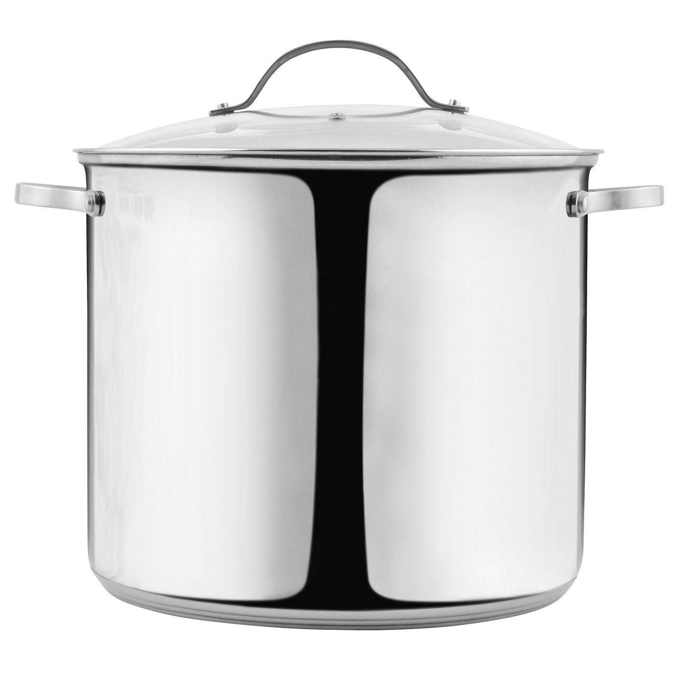 Denne stålgryten fra Day har innvendig mål i gryten, og et glasslokk med damphull. Den kan brukes på alle platetopper, også induksjon.