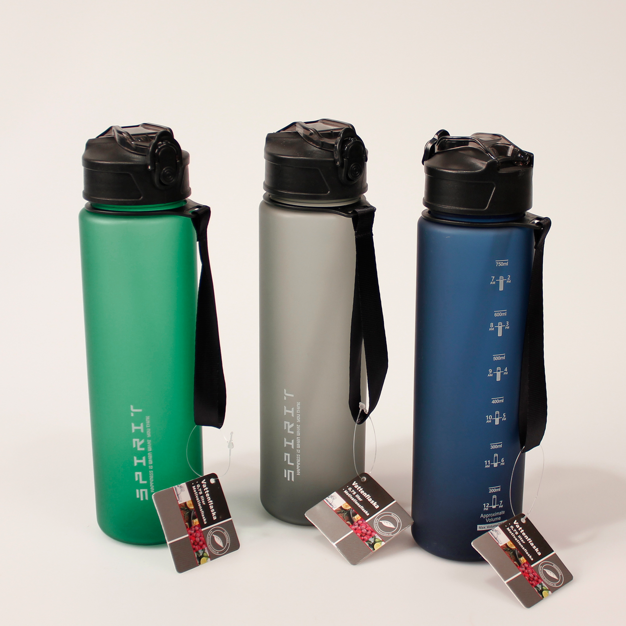 Denne drikkeflasken på 0,75 liter er perfekt til trening, jobb, skole eller tur.
