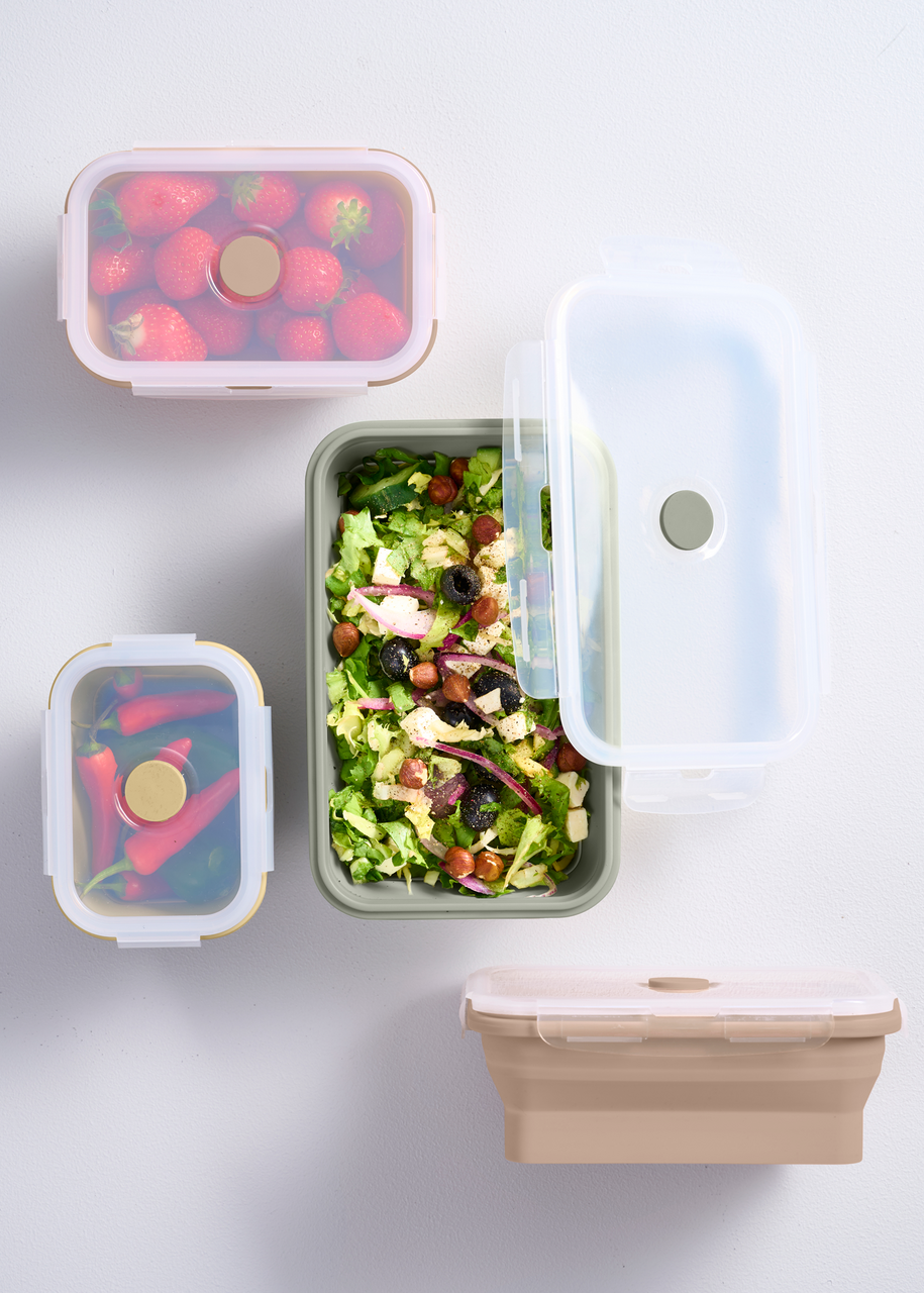 Sett med fire sammenleggbare matbokser fra Day.