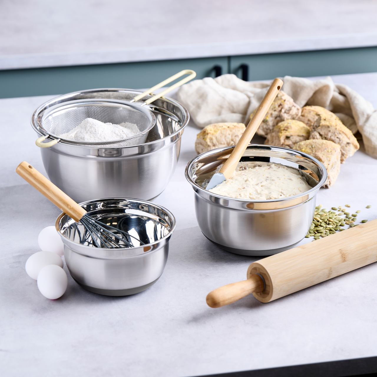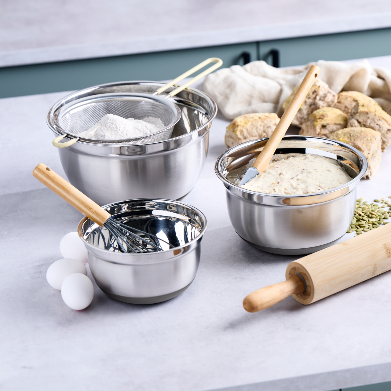 Med disse tre solide rørerskålene fra Day får du allsidige skåler i rustfritt stål, ideell til både baking, matlaging og servering.