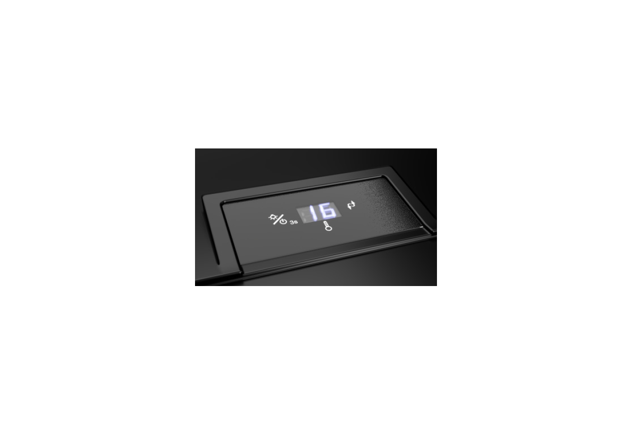 Tidløst, stillegående vinskap med elektronisk betjeningspanel og innebygde LED-lys på topp og sider. Skapet har en sone, hvor man enkelt kan stille inn til ønsket temperatur. Skapet inneholder tre uttrekkbare hyller, hvor hyllene er produsert av FSC godkjent treverk fra bøkefamilien.