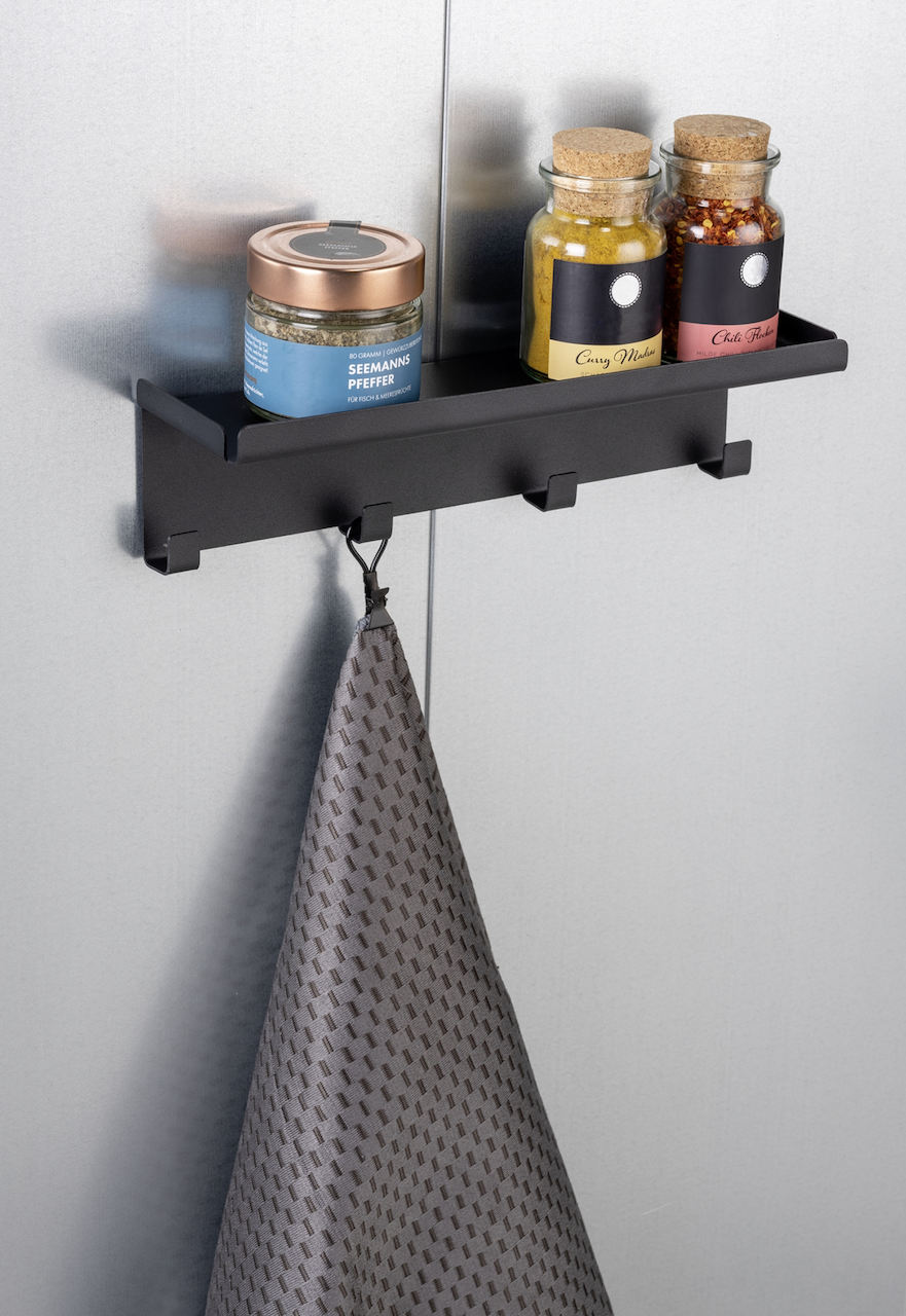 Wenko outdoor magnetisk knaggrekke m/4 knagger+hylle sort