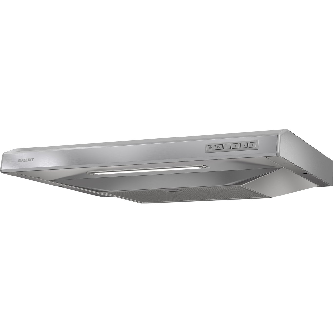 Kjøkkenvifte med motor fra Flexit for plassering under overskap. Den har et svært godt osoppfang, og kommer med et metallfilter som kan vaskes i oppvaskmaskin. LED-belysningen og det elektroniske skyvespjeldet gjør den praktisk i bruk.