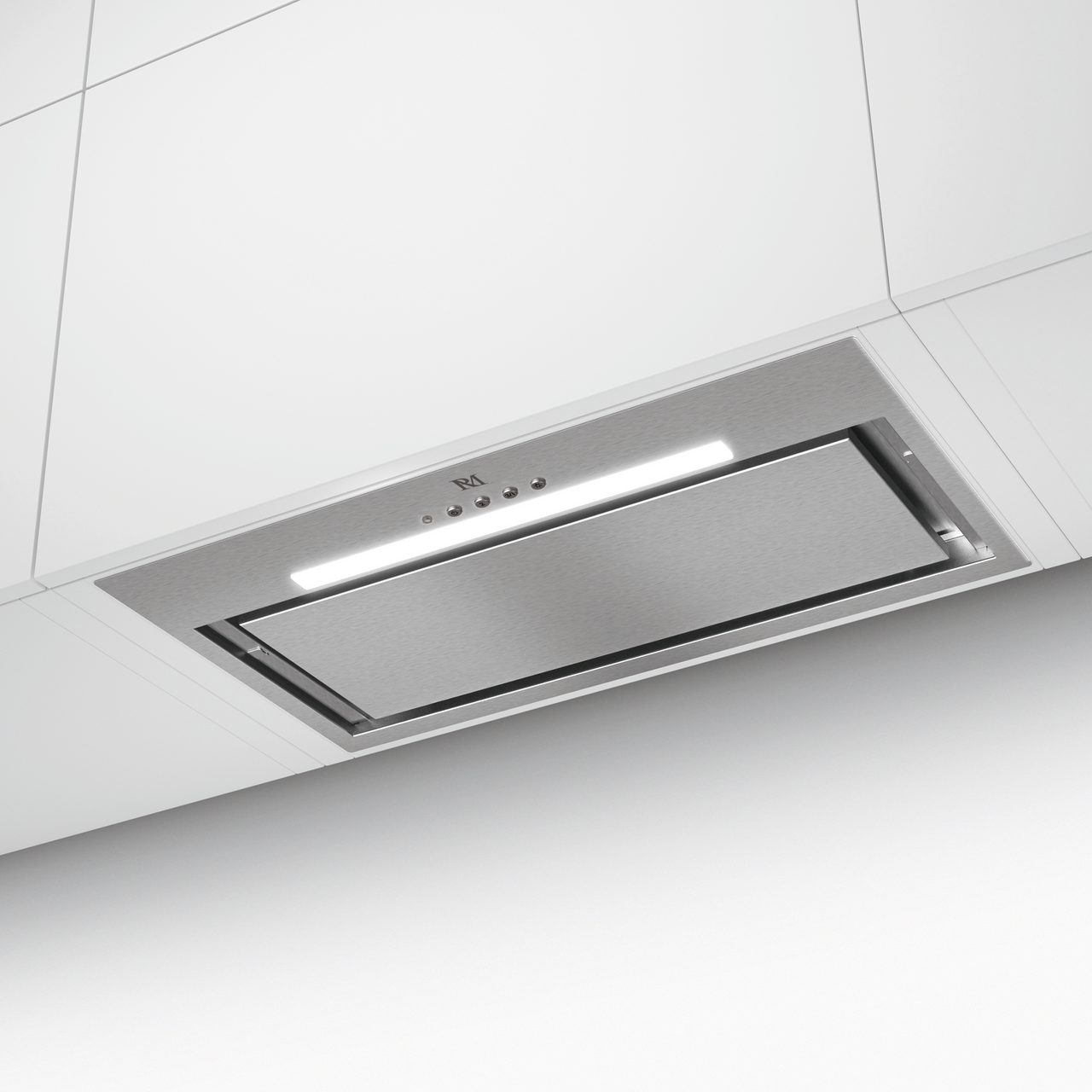 Denne kjøkkenhetten fra Røroshetta er en fullt integrert modell med perimetrisk avtrekk som gir høyere luftstrøm og effektiv fjerning av matos. Den integreres sømløst i overskapet og blir en naturlig del av kjøkkeninnredningen.