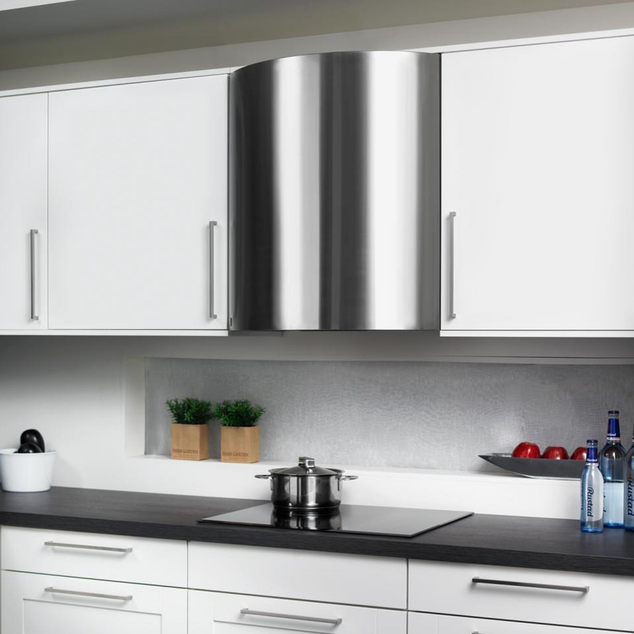 Denne kjøkkenhetten fra Røroshetta er en elegant modell med en avrundet form som myker opp ethvert kjøkken. Hetten passer mellom overskap eller montert fritt på vegg.