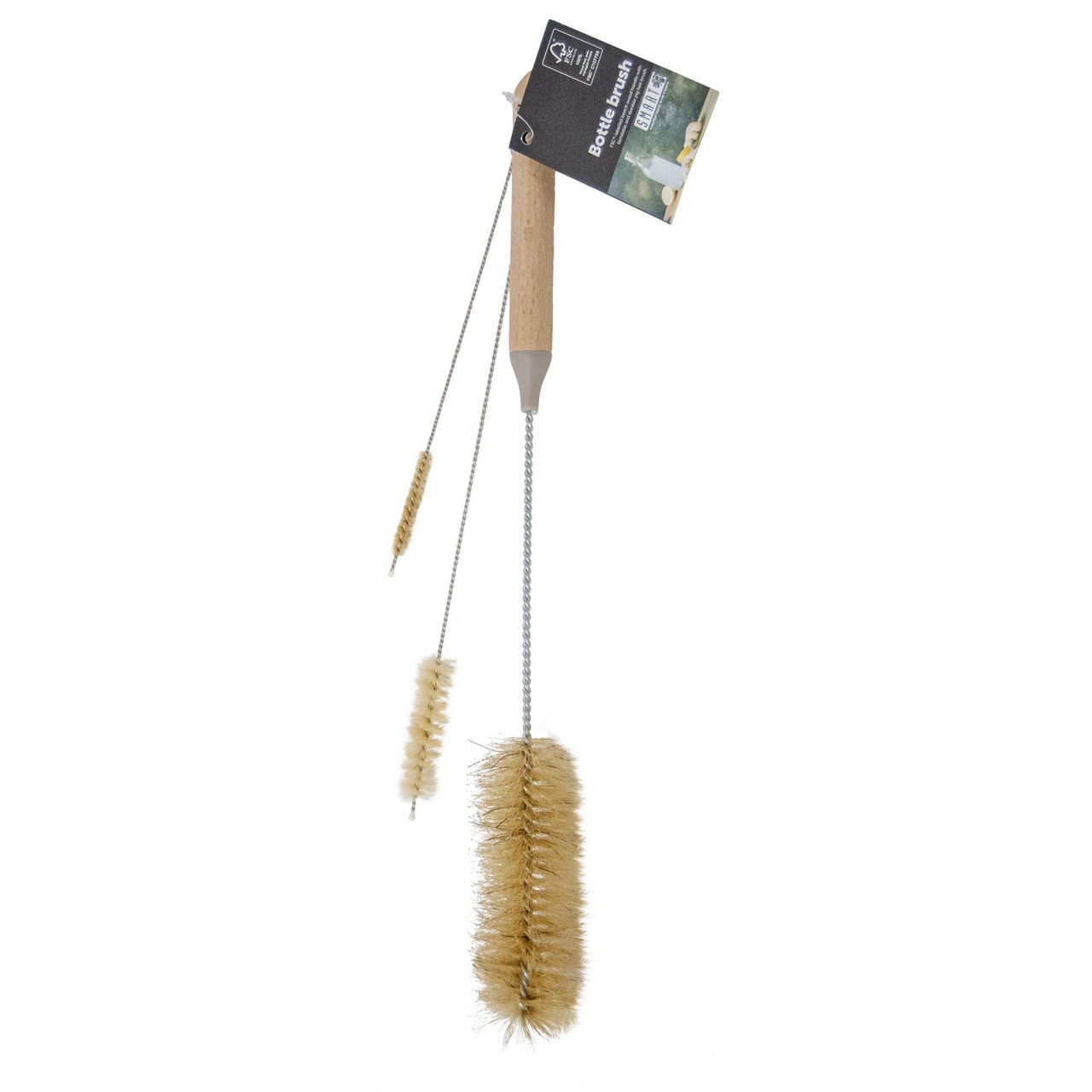 Denne flaskebørsten fra Smart er lang og bøybar, og har håndtak i FSC®-sertifisert tre. Børsten sikrer skånsom og effektiv rengjøring av flasker, vaser, krukker, babyflasker, termoser, sugerør og andre vanskelig tilgjengelige områder.