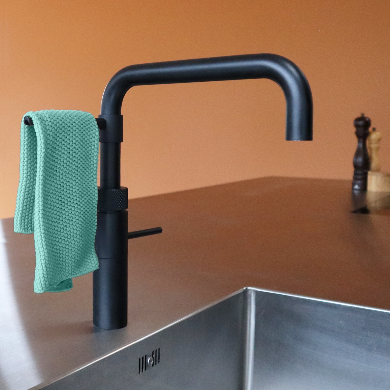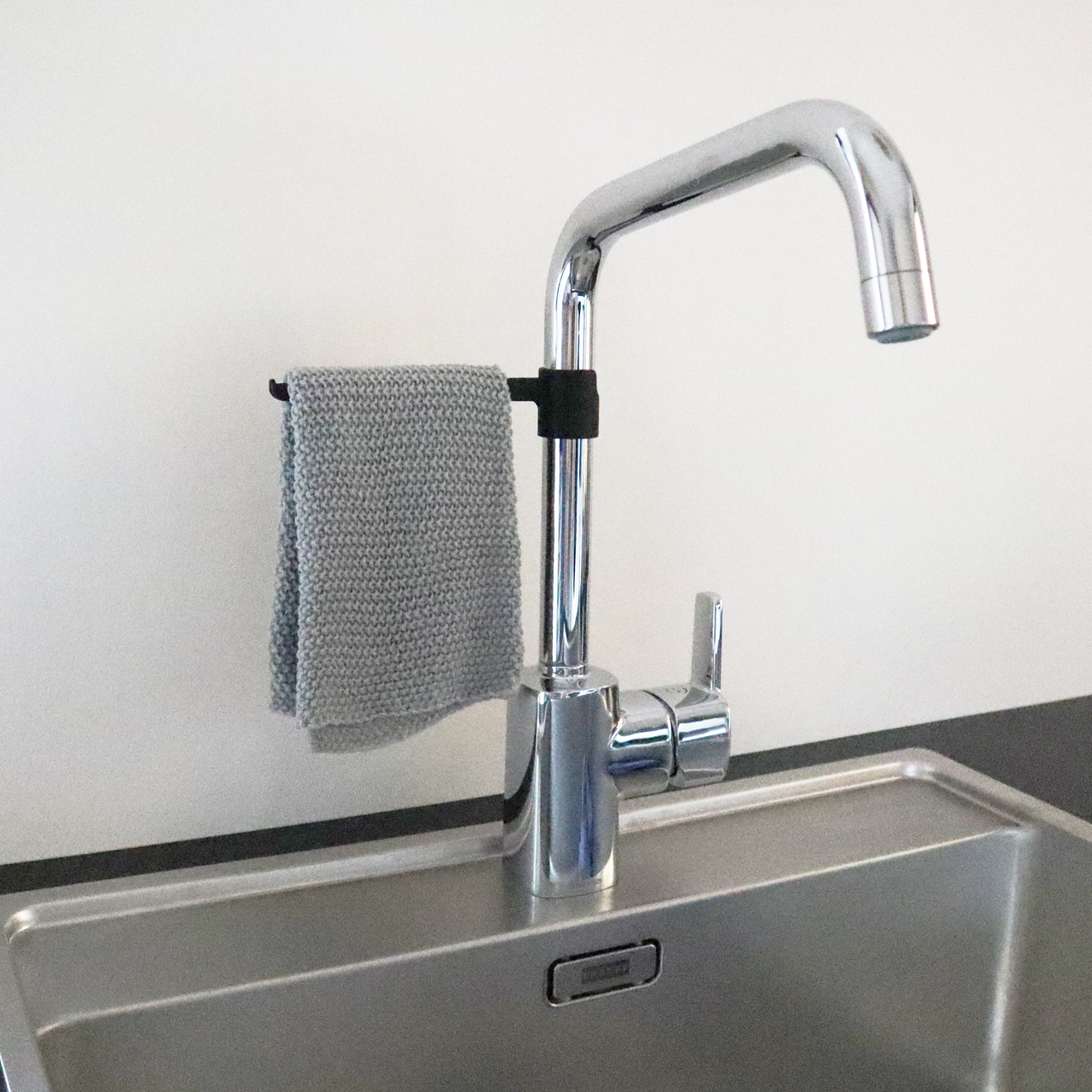Den gjør at kluten tørker raskere, noe som reduserer bakterievekst og lukt. Monteres enkelt uten verktøy på kraner med Ø22–28 mm.