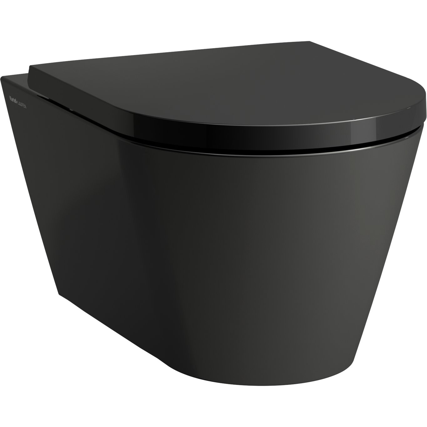 Vegghengt WC design toalett, rimless, svart. Bolteavstand 180 mm.