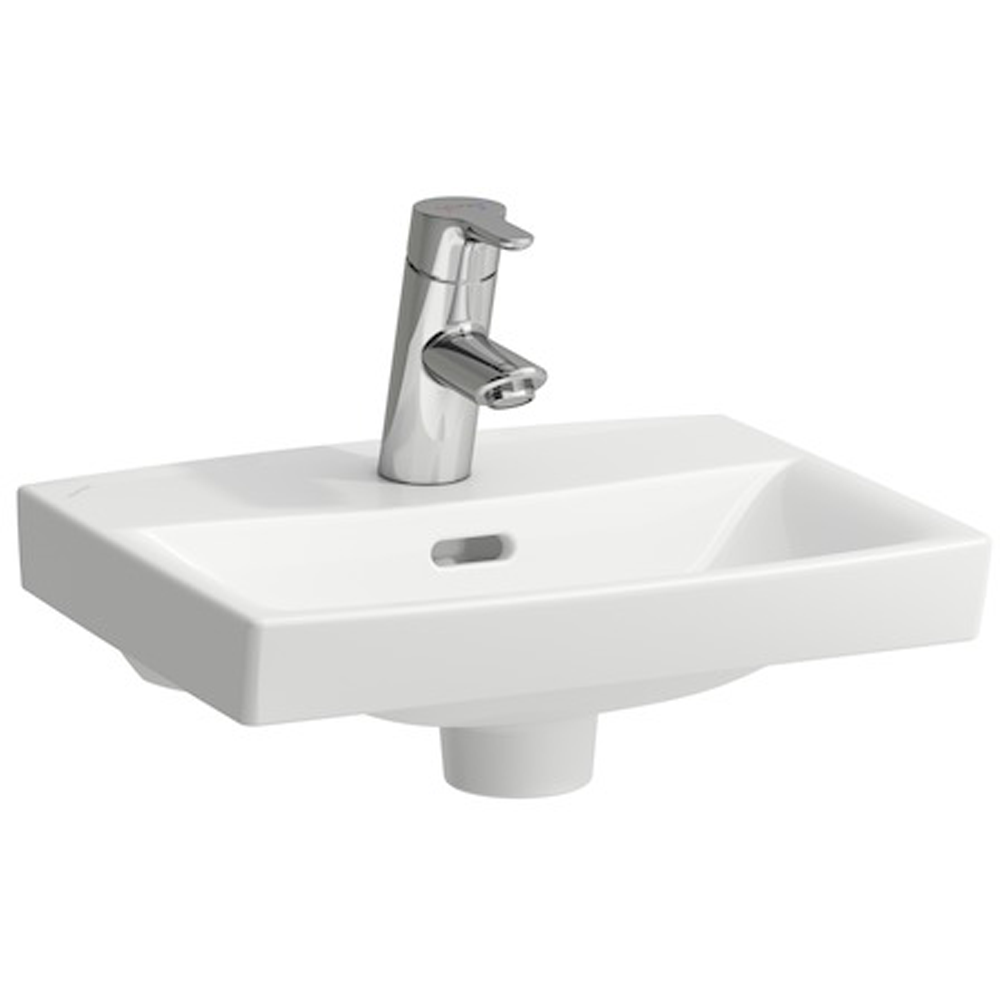 Denne servanten fra Laufen har rene linjer og et minimalistisk design. Den kommer med hull til servantarmatur midt på.