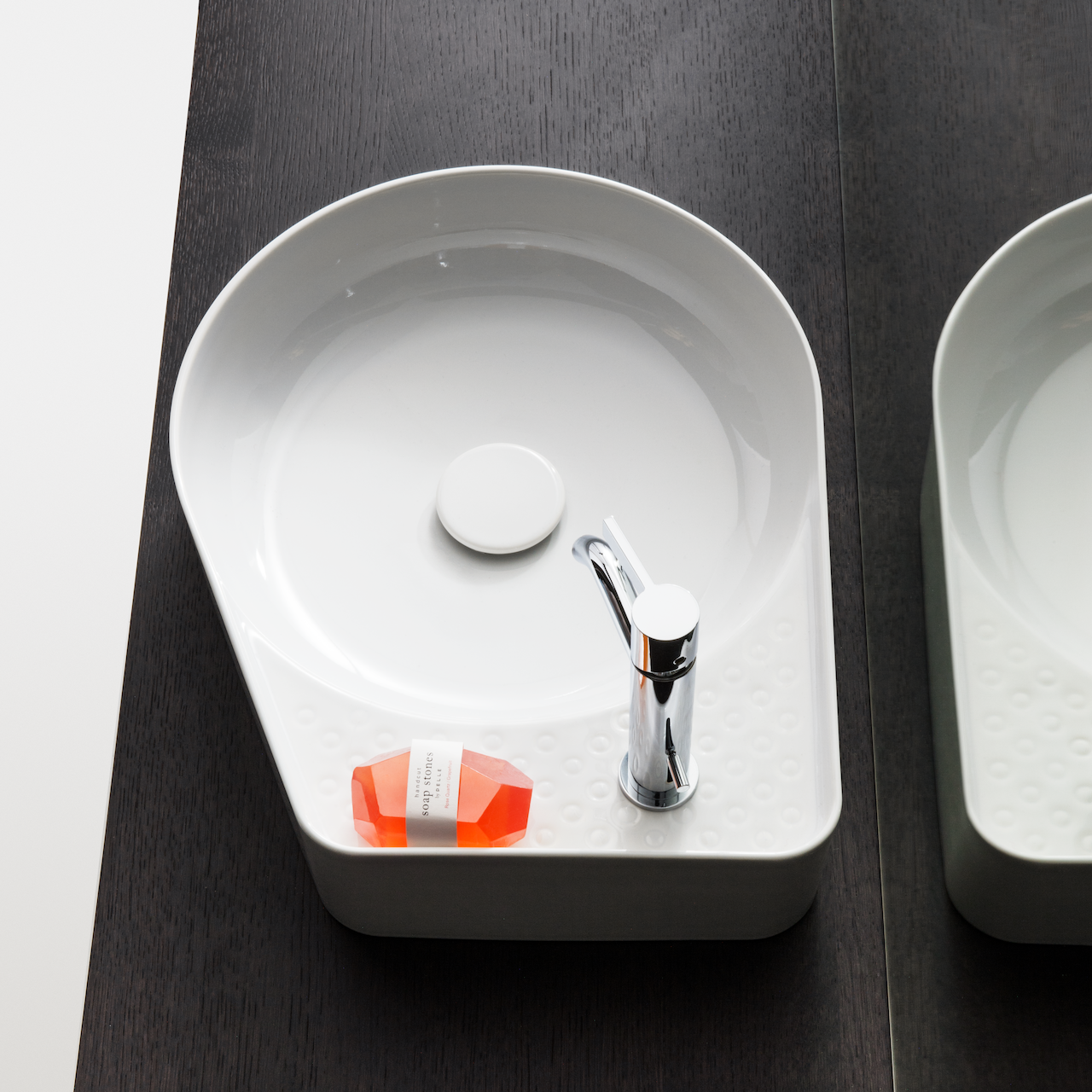 Designet av Konstantin Grcic i SaphirKeramik. Takket være sin ekstremt slanke kontur og klart definerte radier, er servantene lette og elegante.