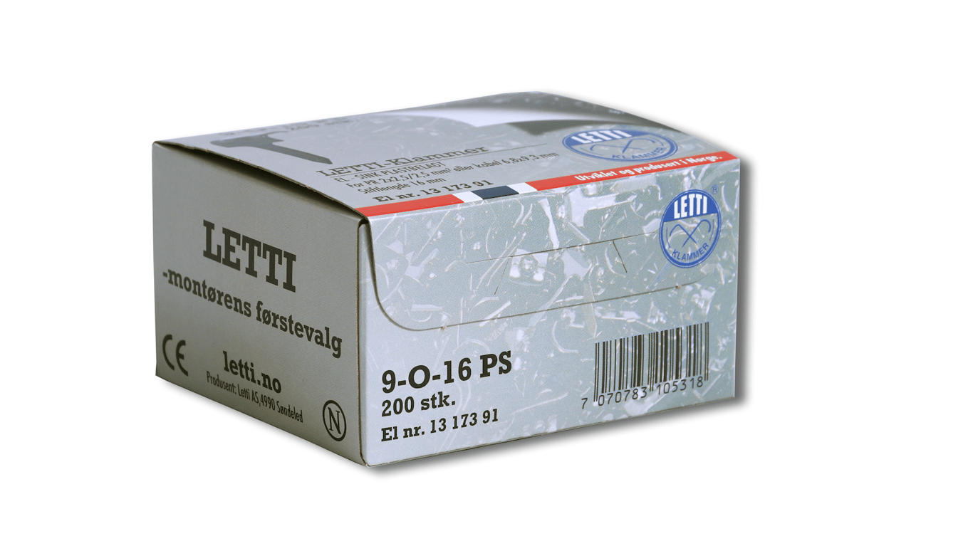 LETTI-KLAMMER 9-0-16 PS PR2X2,5 SORT 200 STK