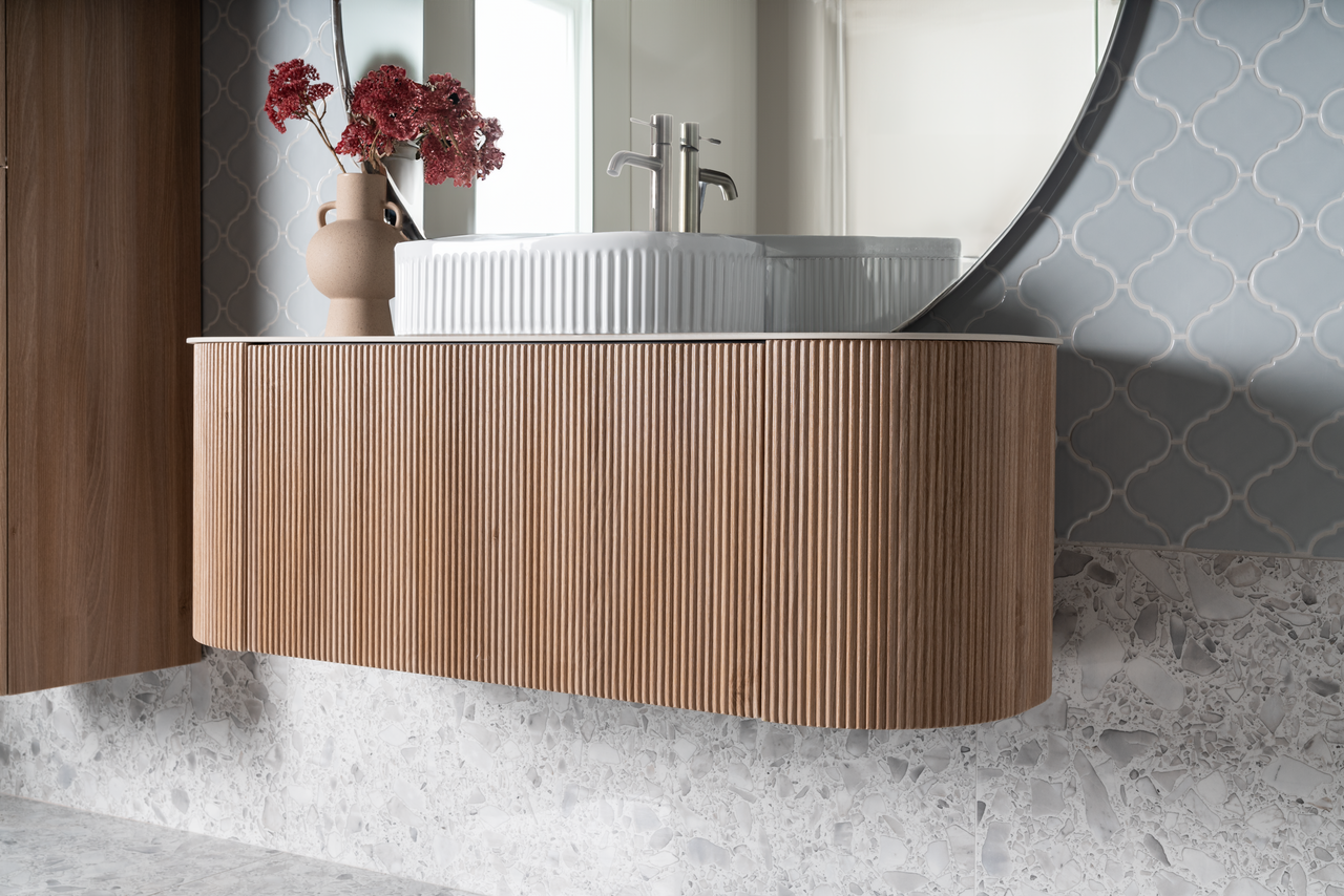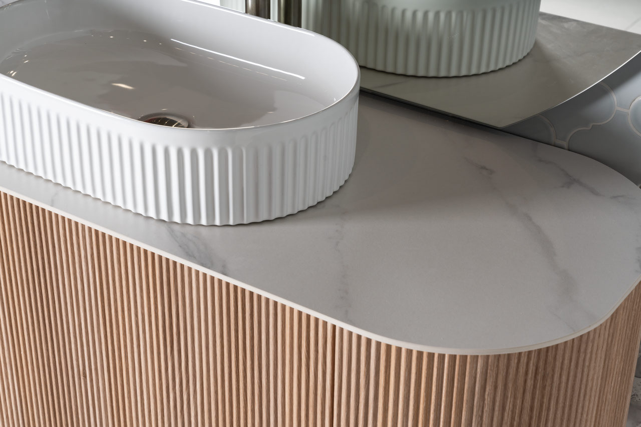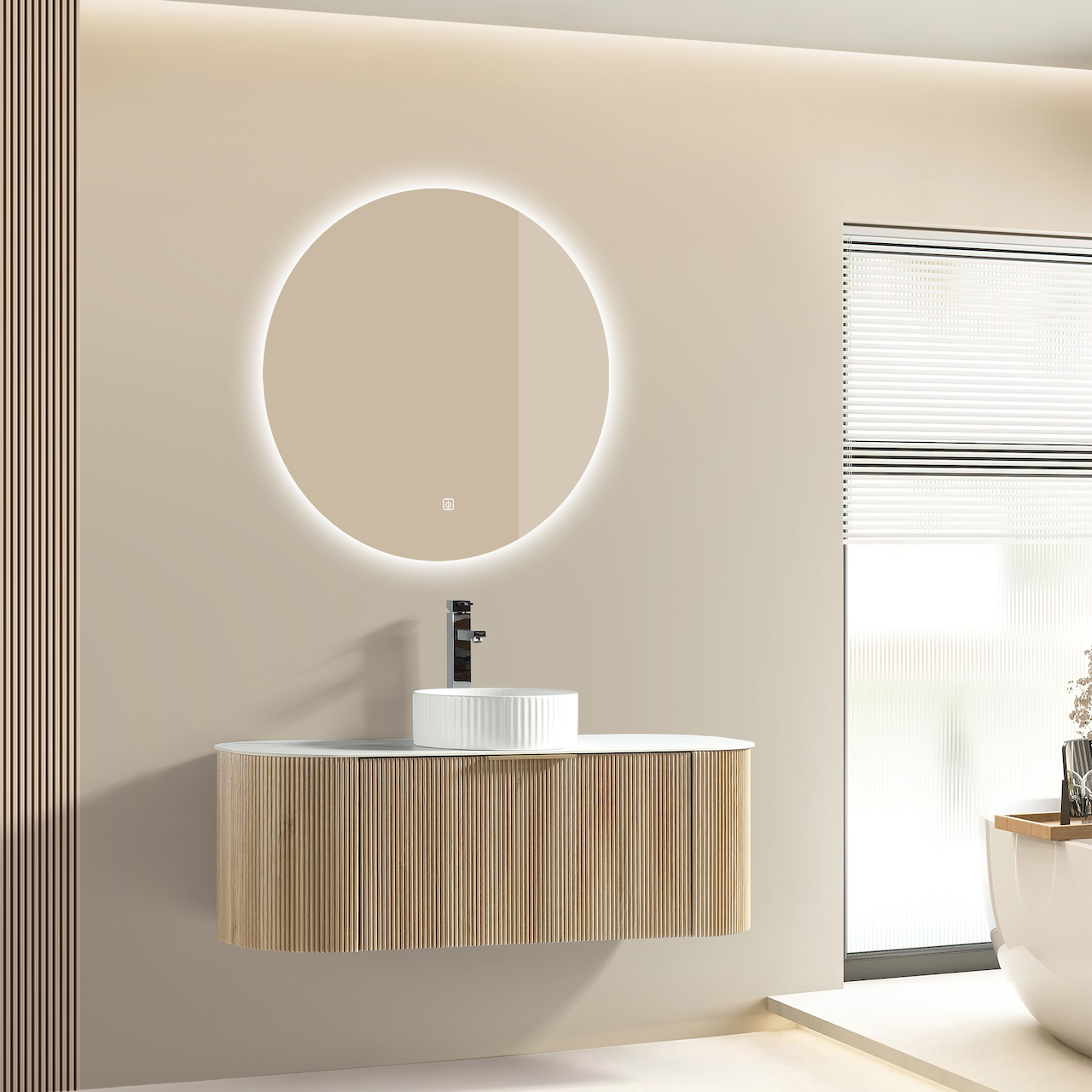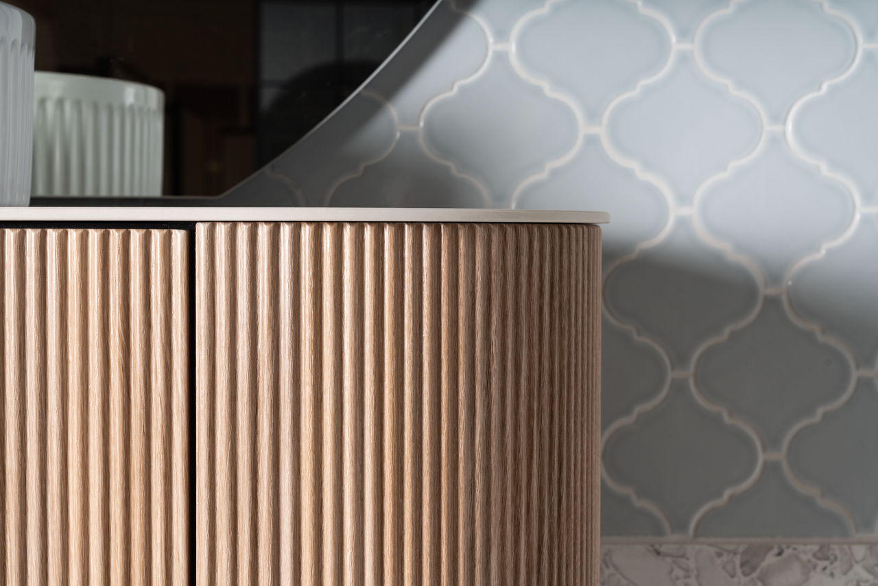 Lind Breath er en moderne og elegant møbelserie i en eikefarge som passer perfekt inn i den skandinaviske stilen. Dette baderomsmøbelet har riller i front, og en foliert overflate. Den folierte overflaten gjør rengjøringen enklere, og bevarer møbelets slitestyrke.