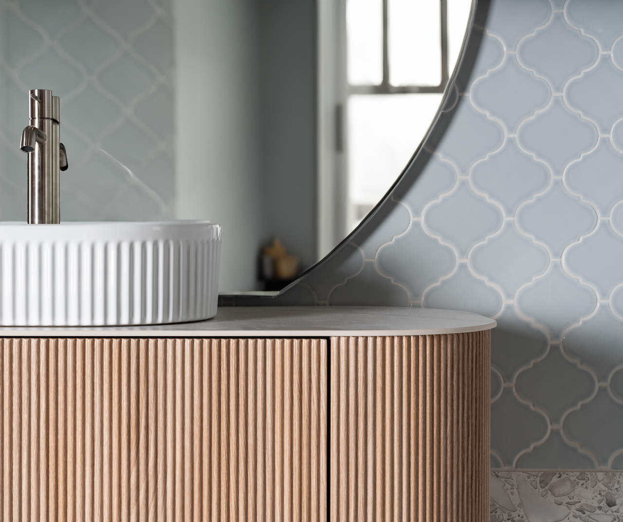 Topplate, servant, servantarmatur og håndtak kjøpes separat.