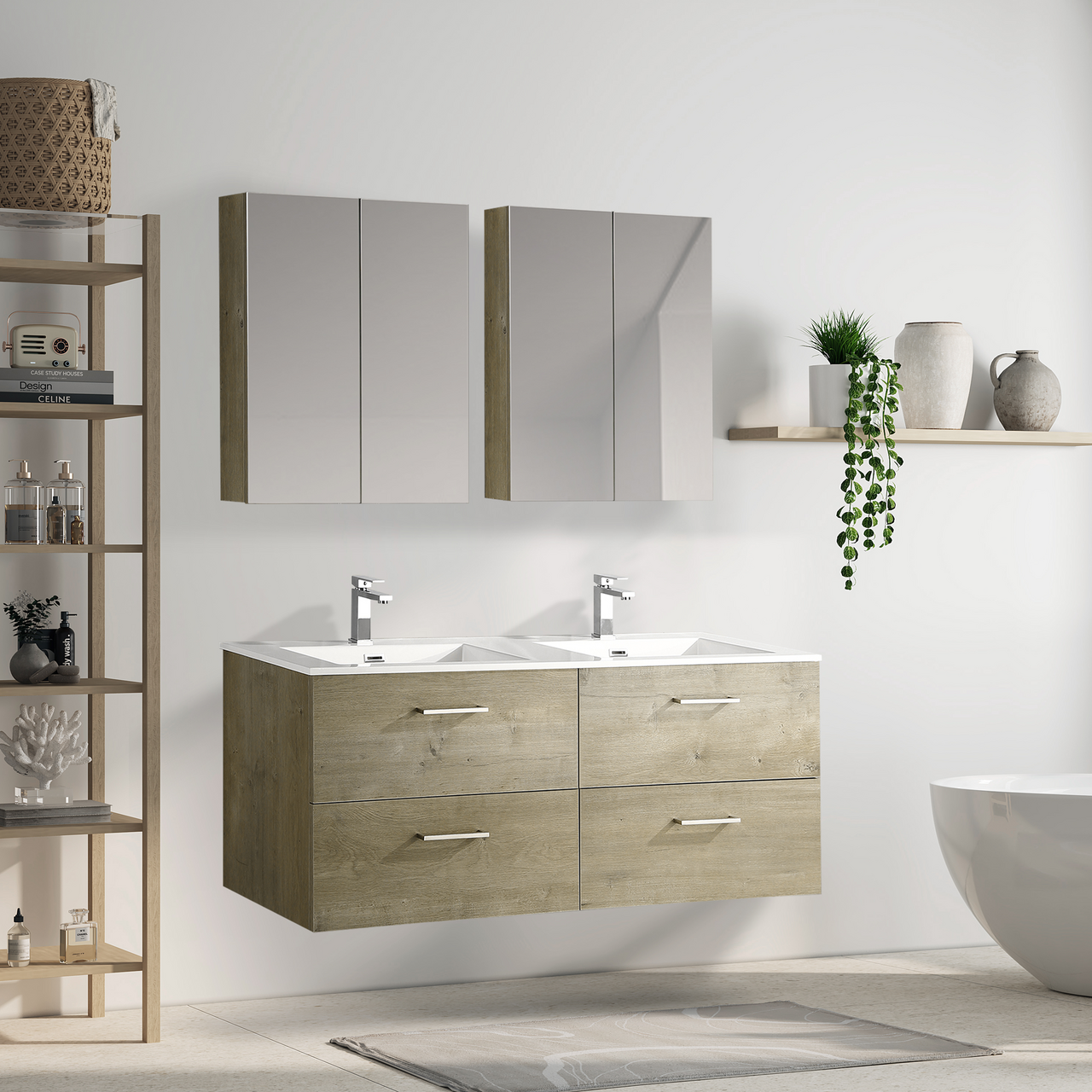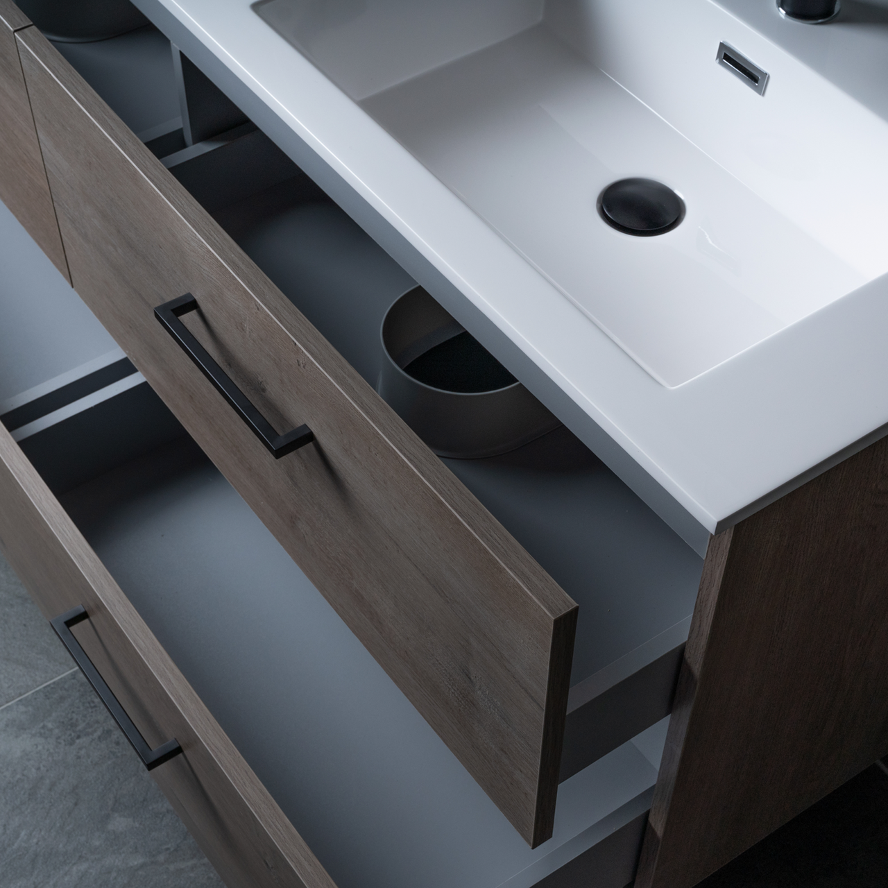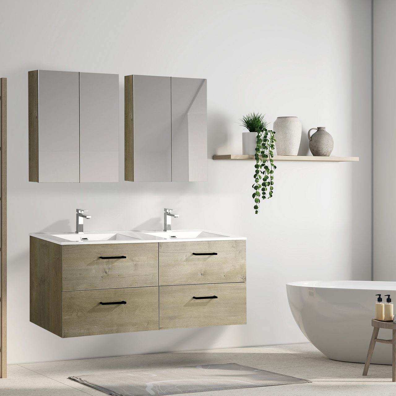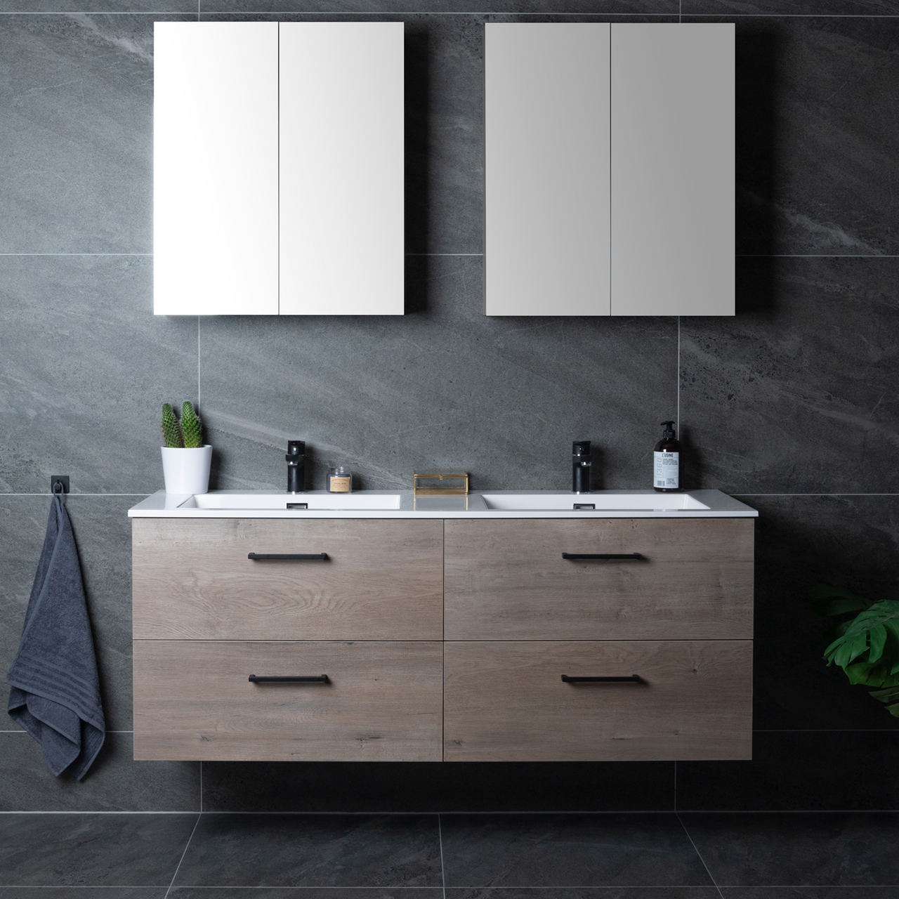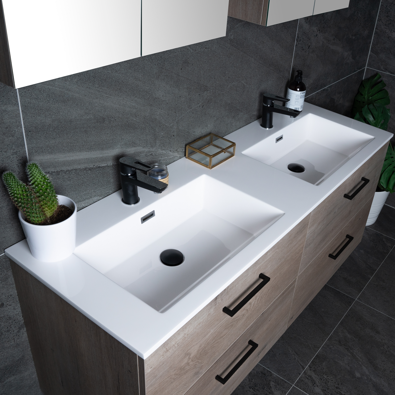 Baderomsmøbelet kommer ferdig montert og skuffene på møbelet har en soft close-funksjon som sørger for myk lukking og forlenget levetid. Baderomsmøbelet kommer uten håndtak slik at du kan sette ditt personlige preg på møbelet ved å velge håndtak selv.