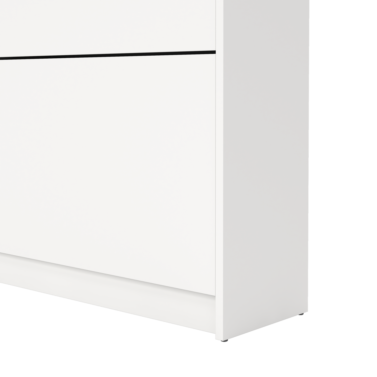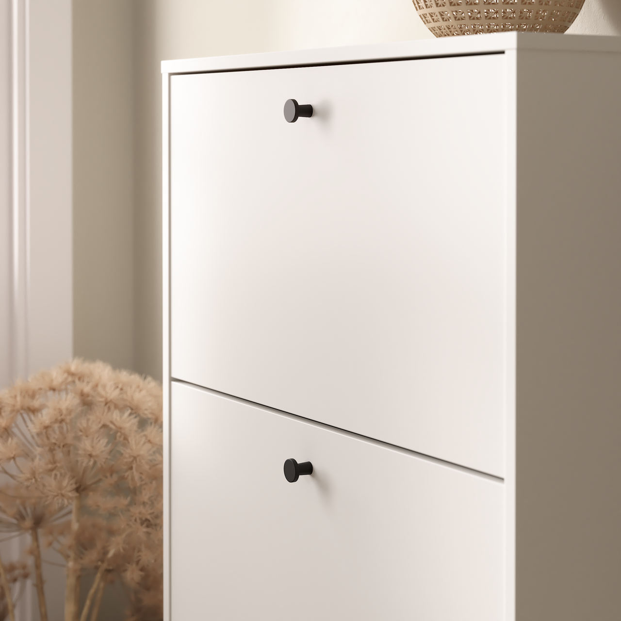 Fiora skoskap fra Lind er en allsidig og minimalistisk plassbesparende oppbevaringsløsning, med to rom og nedfellbare dører.