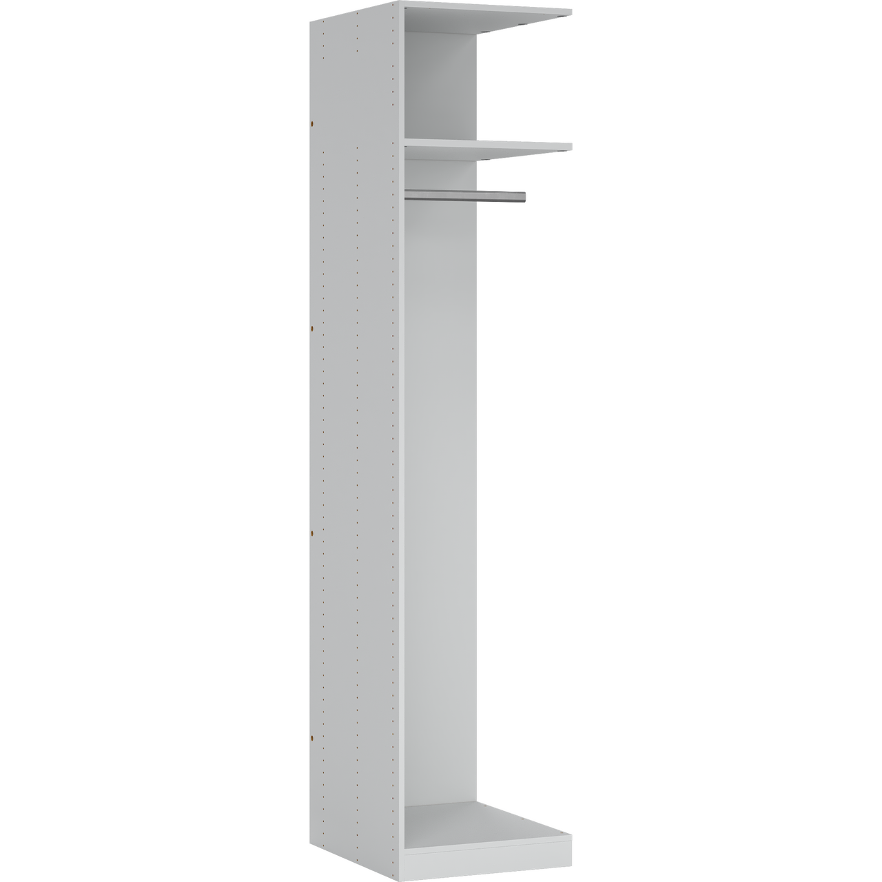 Dette er en påbyggingsmodul for Lind Nest garderobeløsning som lar deg enkelt utvide garderoben med 50 cm enten til høyre eller til venstre side. Pakken inneholder topp, bunn, hylle, sokkel, stang, bakplate og skillevegg, og kombineres med Lind Nest garderobeløsningen.