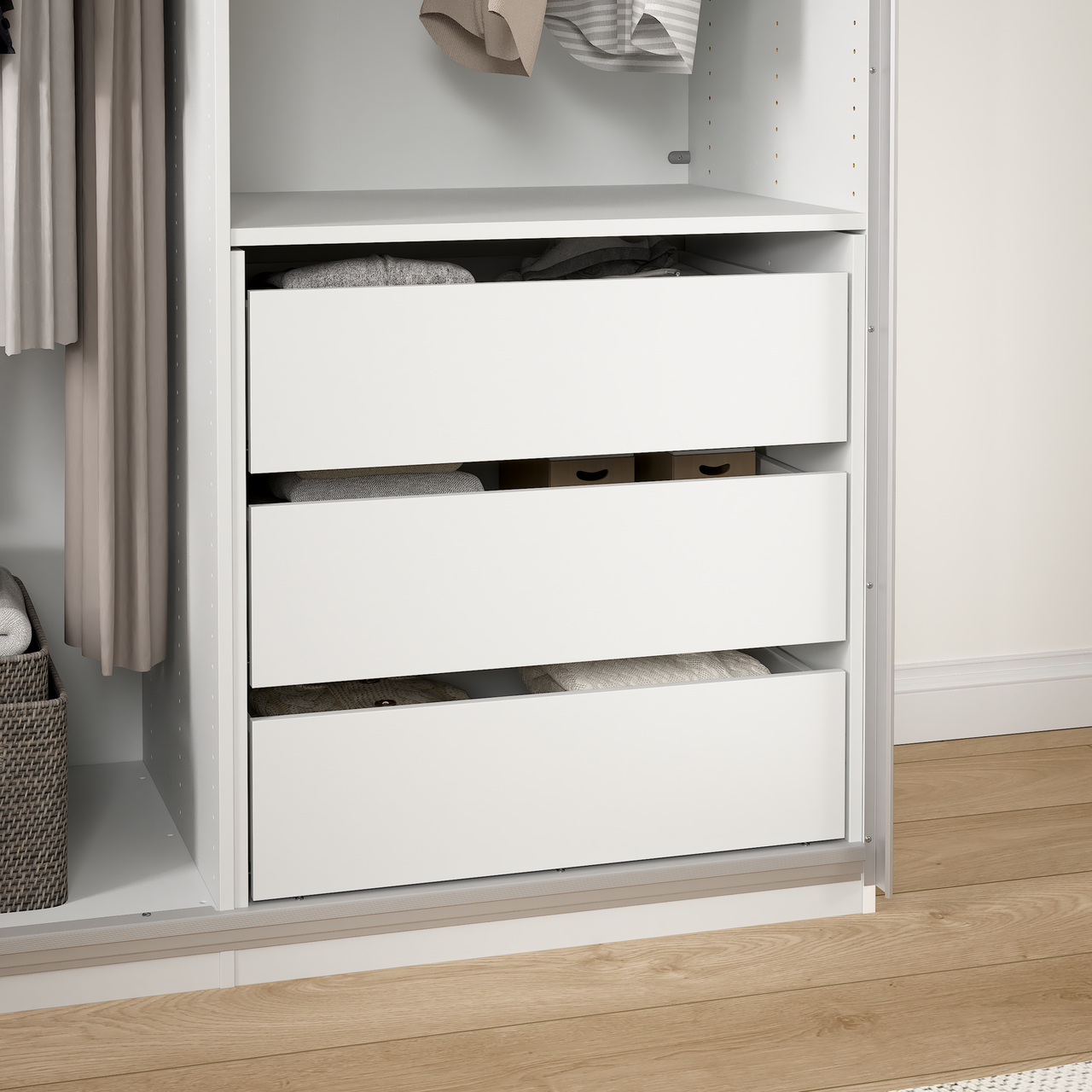 Skuffeinnsats til Lind Nest skyvedørsløsning, med tre romslige skuffer for organisert oppbevaring.